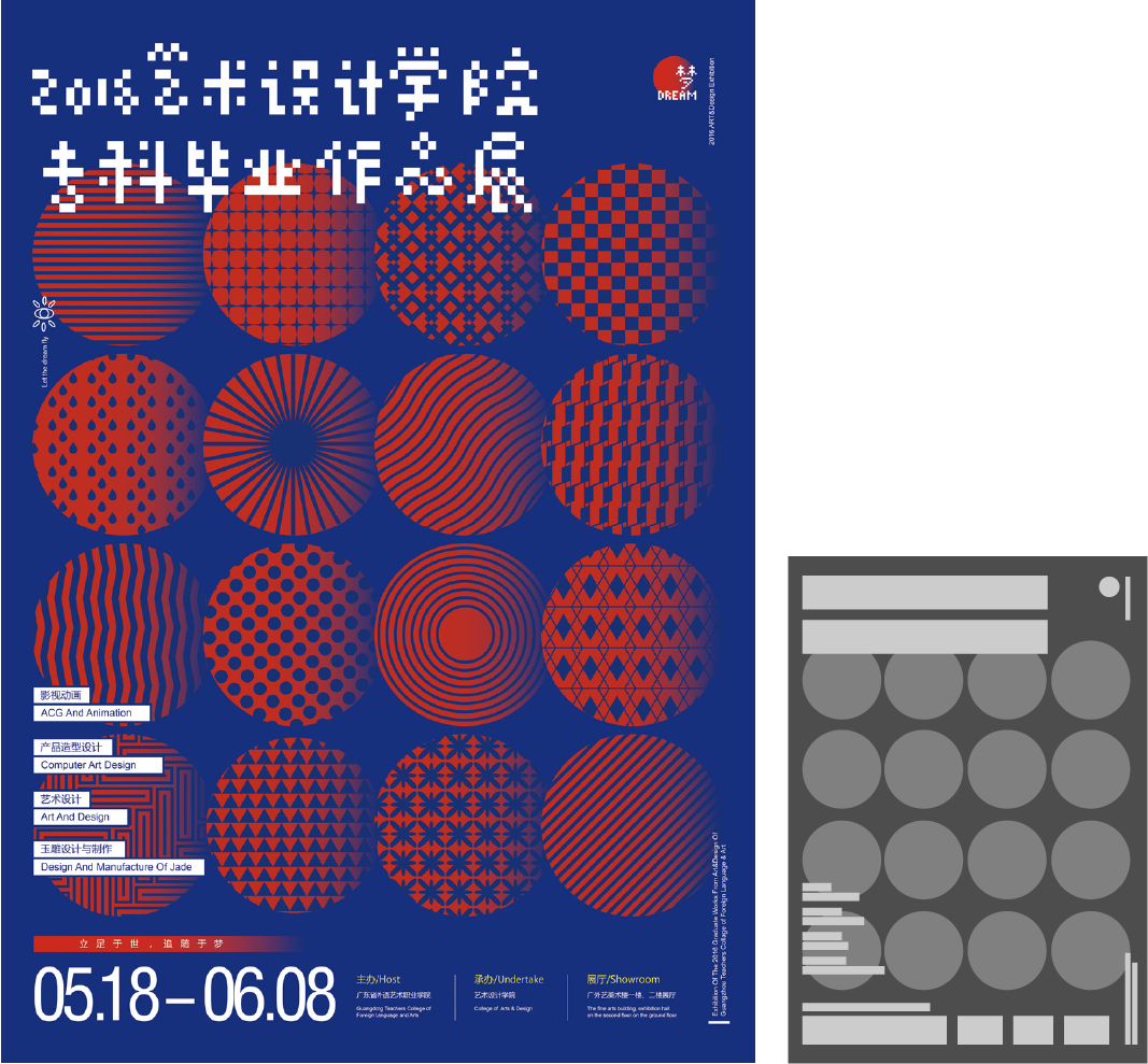 如果版面元素较少,也可以加入点元素作为背景,如下图,把主体元素作为背景纹理,质感和层次填补了空白,使版面不会过于单调。