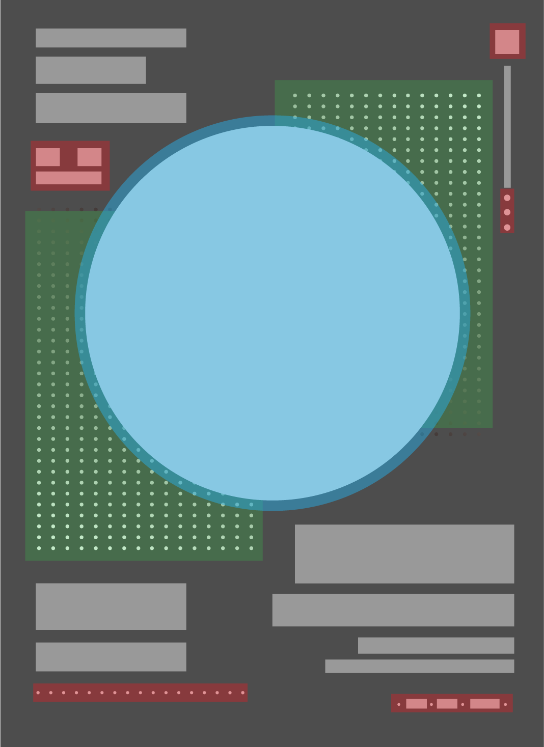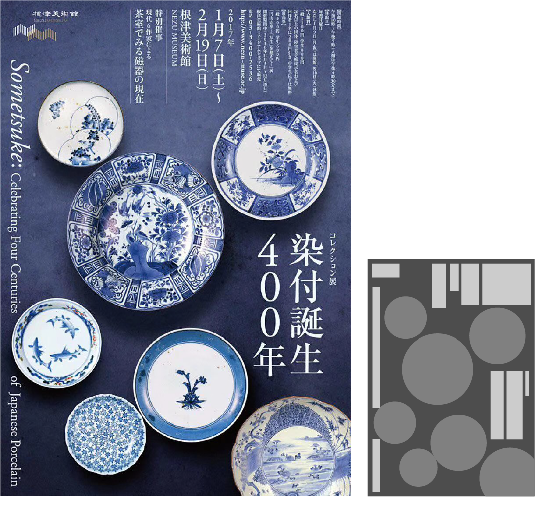 最后把画面解构倒推到最基本的点线面,可以看到“点”元素在这个版面中起到了主体元素(蓝色部分)、点缀元素(红色部分)、背景元素(绿色部分)的作用。
