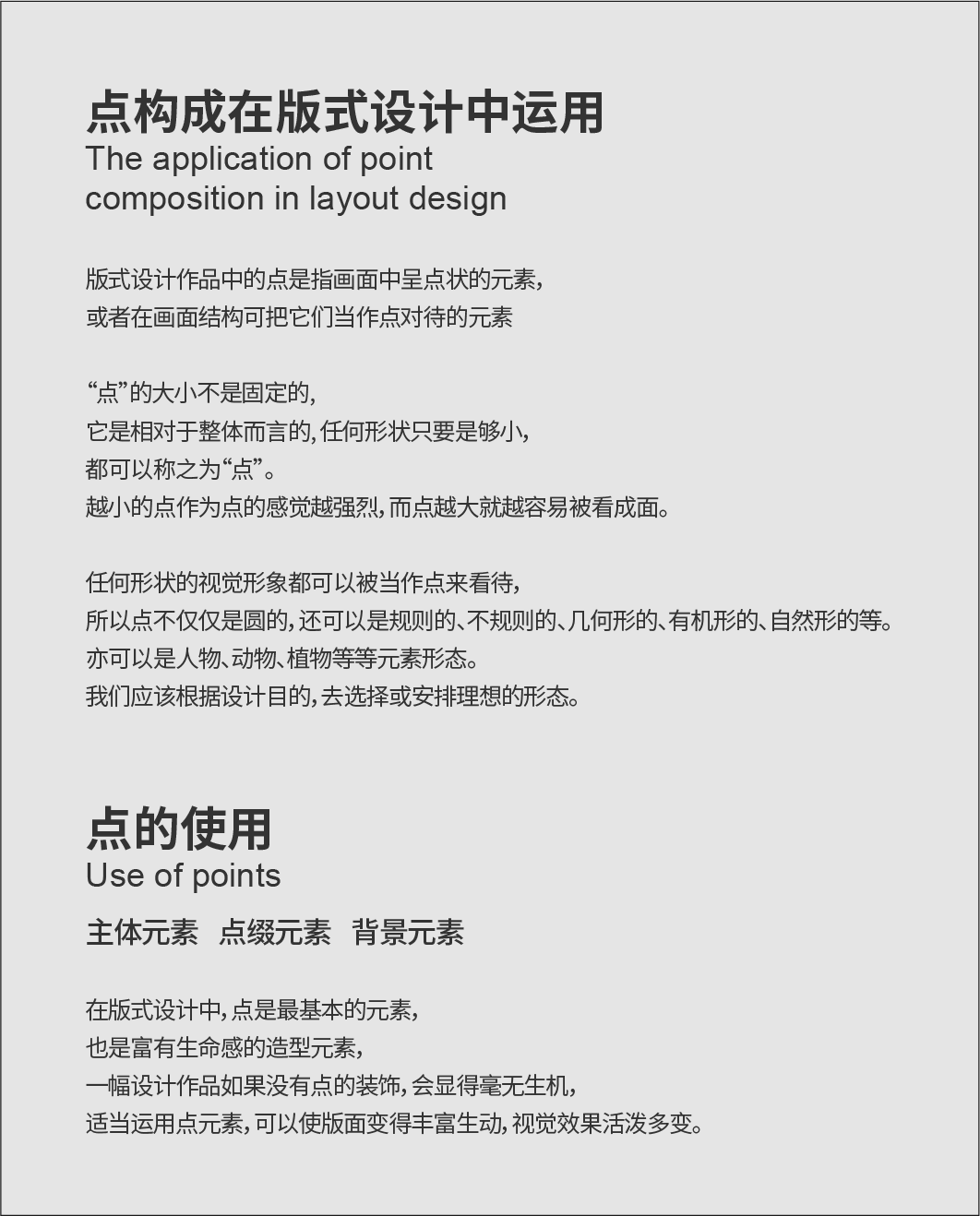 一幅设计作品适当运用点元素,可以使版面变得丰富生动,视觉效果活泼多变。接下来分别通过“点”做为主体、点缀和背景的三大使用场景进行分析,讲解“点”在版式设计中是如何运用的。