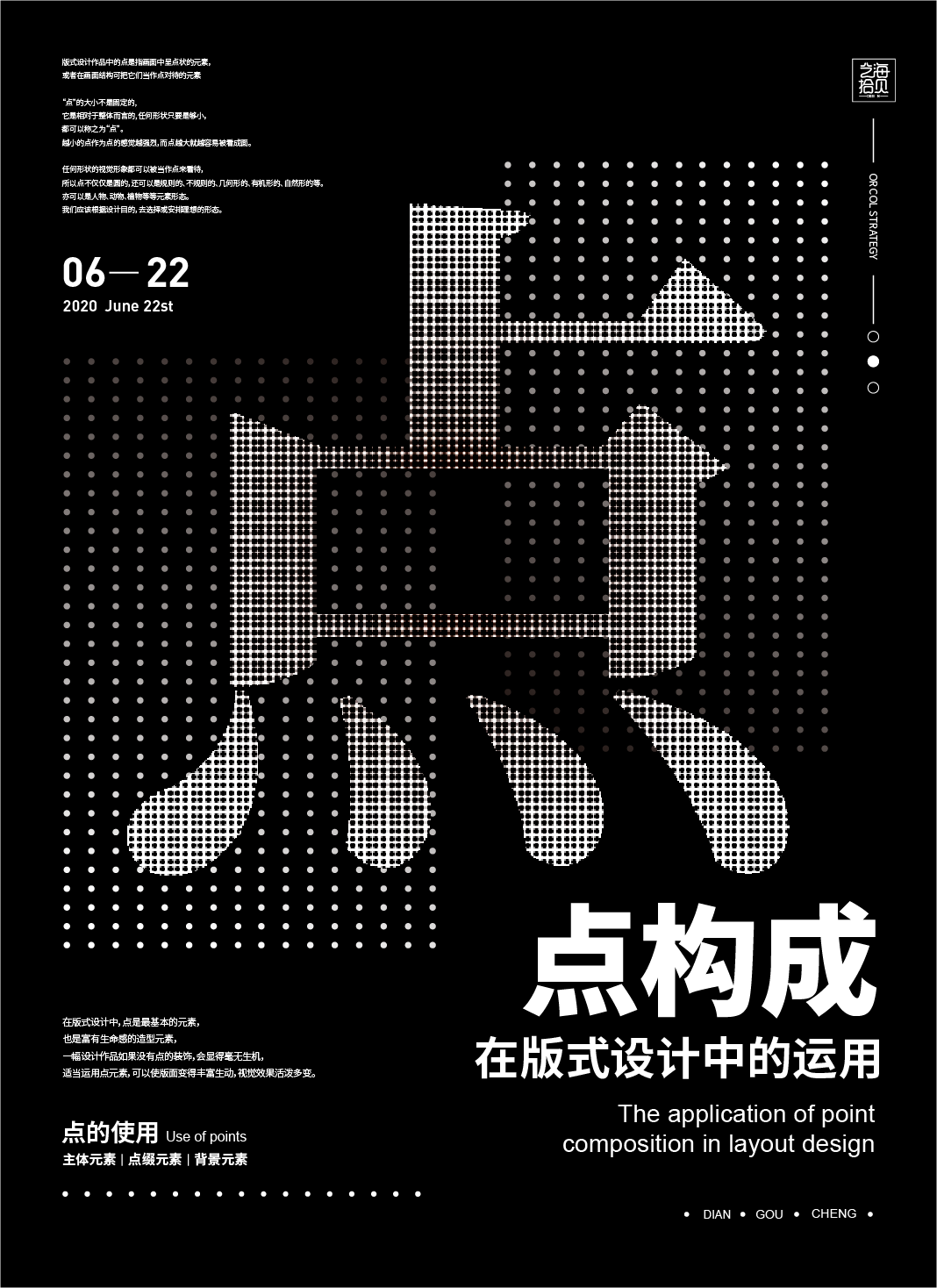 “点”在版面中可以作为主体元素主导画面,也可以起到点缀、丰富版面的作用,还可以作为背景纹理使用,你学会这个知识“点”了吗?