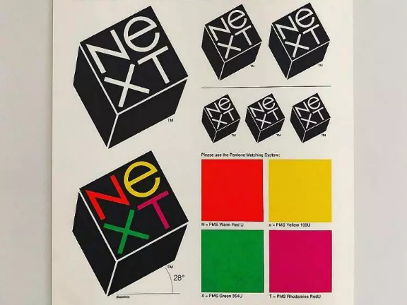 苹果公司也是同理,logo造型和公司名称一致,辨识度极高,让人一眼就能记得住。省去了过多营销,降低了教导大众一遍遍认知的成本。有了之前的成功经验,乔布斯更加断定砸重金让保罗·兰德设计logo,值。他能接受一稿不改,但问兰德能不能多出几个方案,让他选选?“我做设计从不给客户备选方案。就一个,要方案多的,你去找别人。”“我会给你提供最好的方式解决问题,无论你最终用不用,都要把钱付给我。”日常暴躁且偏执的乔布斯,认为自己遇到了同道中人,没有再反驳。两周左右的时间,logo就设计好了。最后,大概是这个样子。各位觉得如何?因为乔布斯和他描述了未来电脑的样子,兰德将logo做成了黑色立方体。为了满足乔布斯的意愿,他用公司名称来设计logo,他认为使用基础字体去设计logo是必要的,然后在其中一个字母上做创新。保罗·兰德还设计了一个小册子,从字体,排版,颜色多方面论证了这个logo的合理性。乔布斯非常喜欢。next是一个太常见的词,为了让它陌生一点,保罗·兰德将其变成大写。将其中的“e”变成小写,做出视觉焦点,有趣灵活。寓意三个单词:education教育、excellence卓越、exceptional杰出。据《乔布斯传》记载,他看了一会儿logo,过去拥抱了兰德。