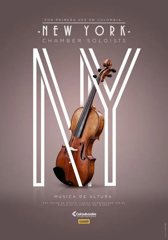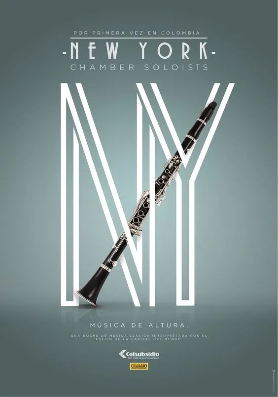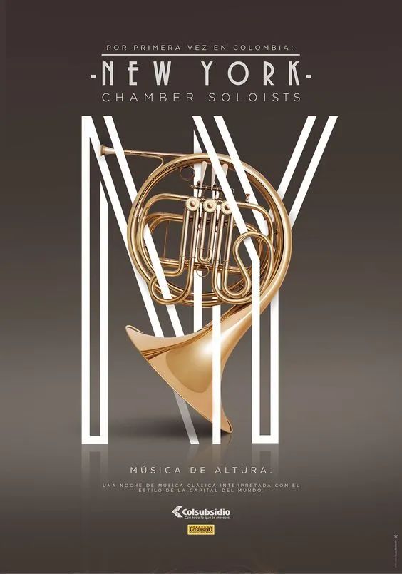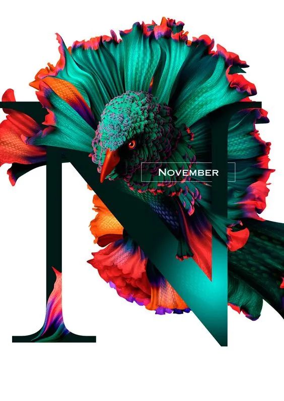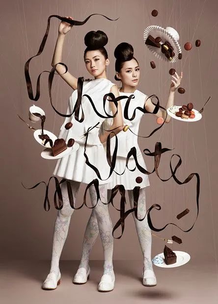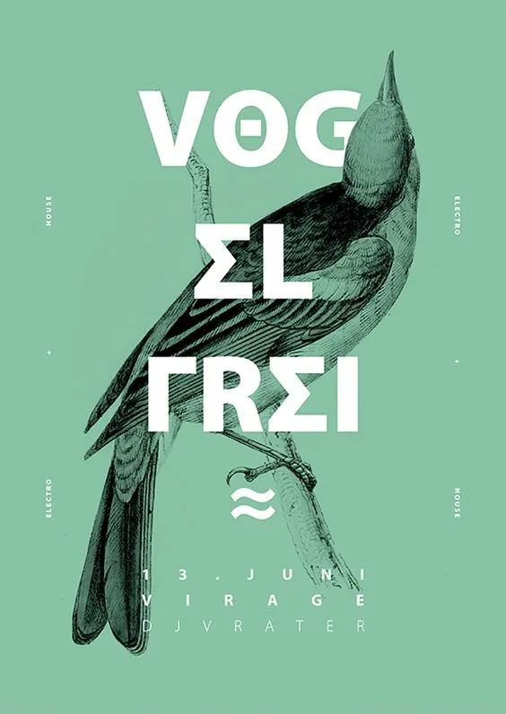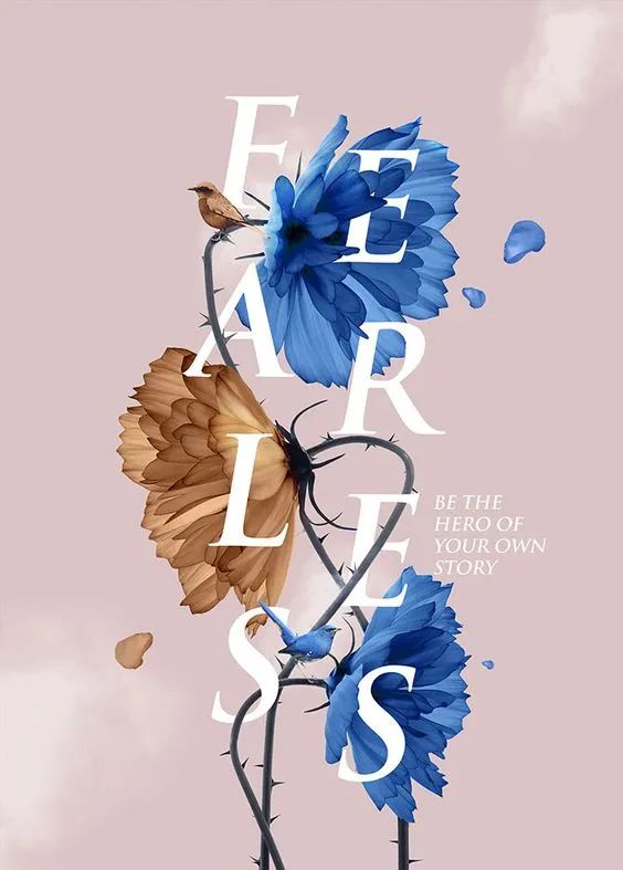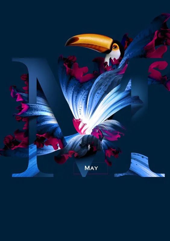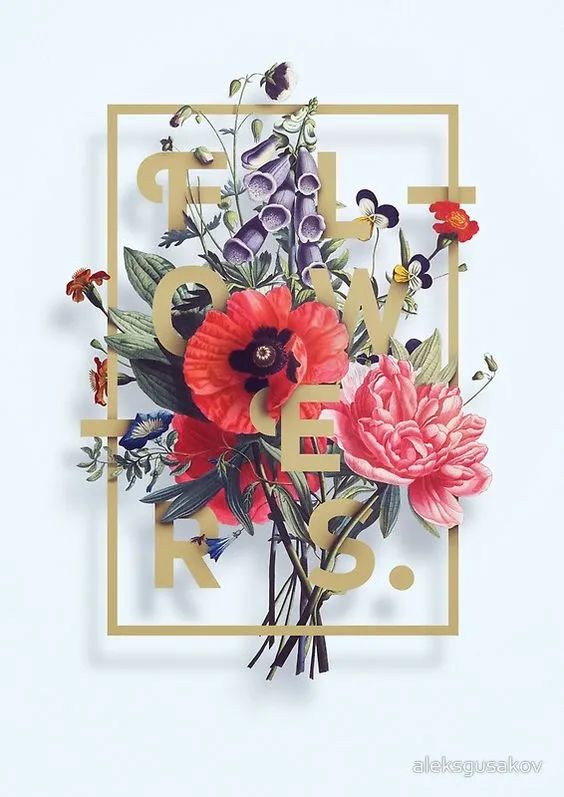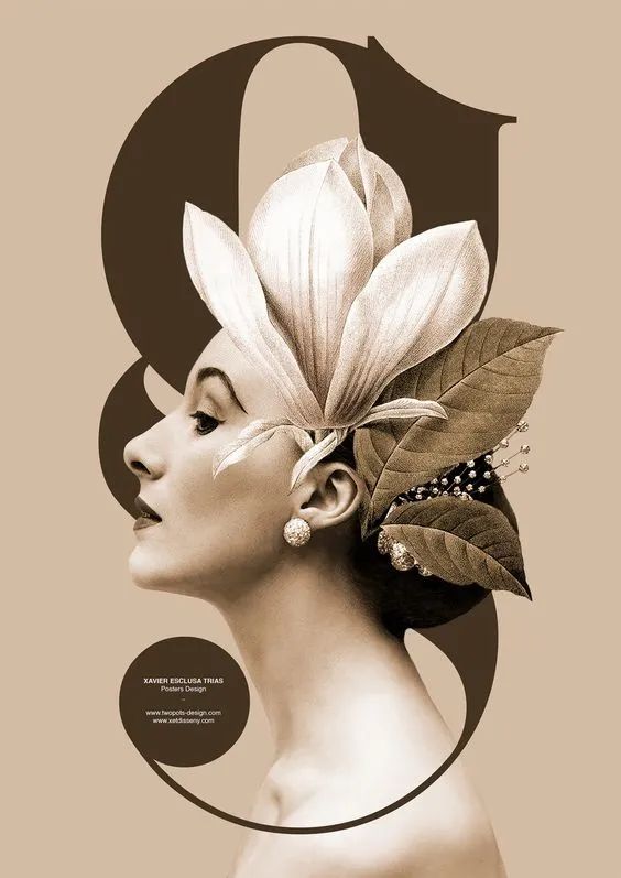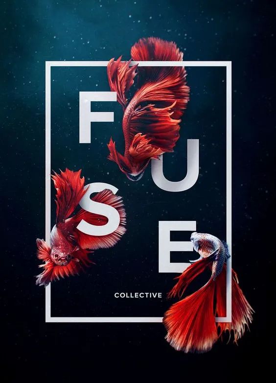 除了与人物进行穿插,这种手法同样适用于与动物或静物进行穿插,就像下面的这些案例,有字体与花,字体与鱼、鸟等动物,还有字体与乐器等,通过这样一种穿插的手法营造出了丰富的空间层次关系,具有很好的视觉效果。