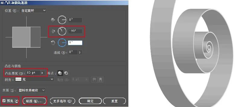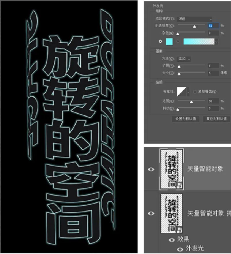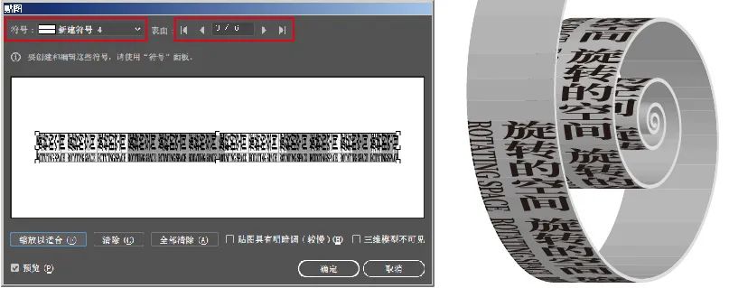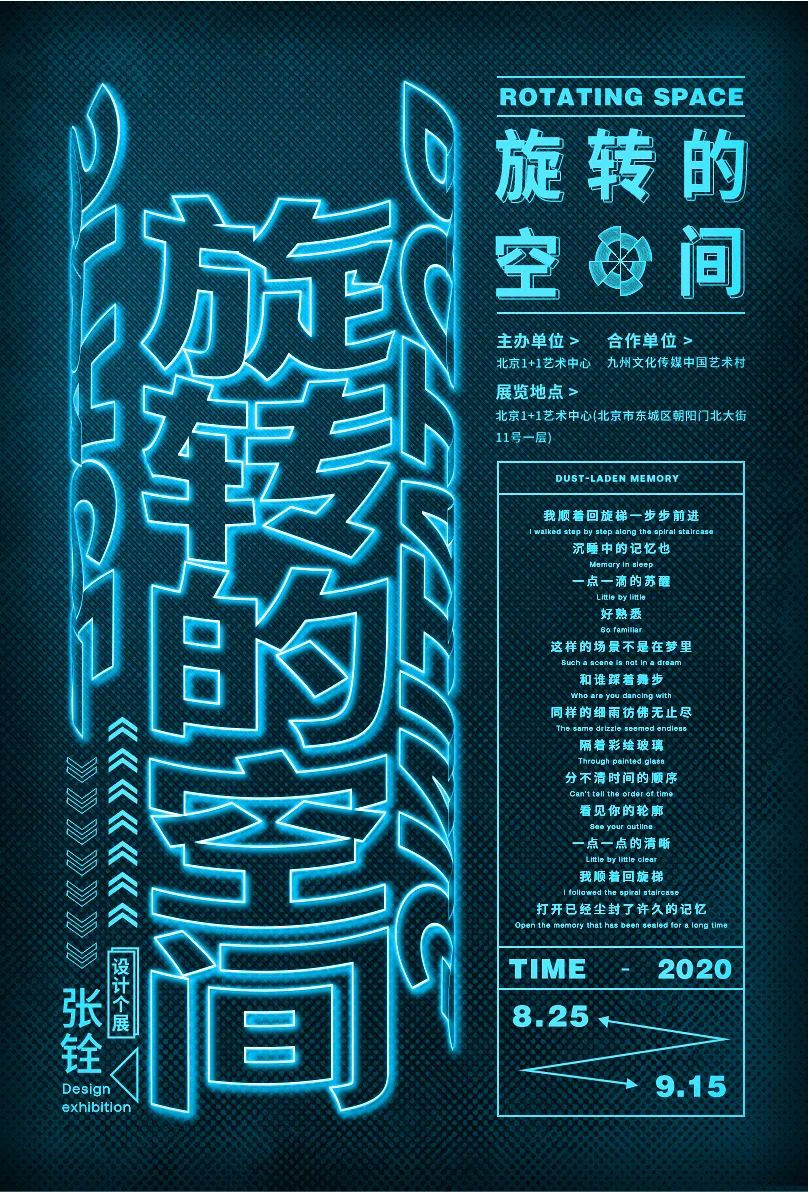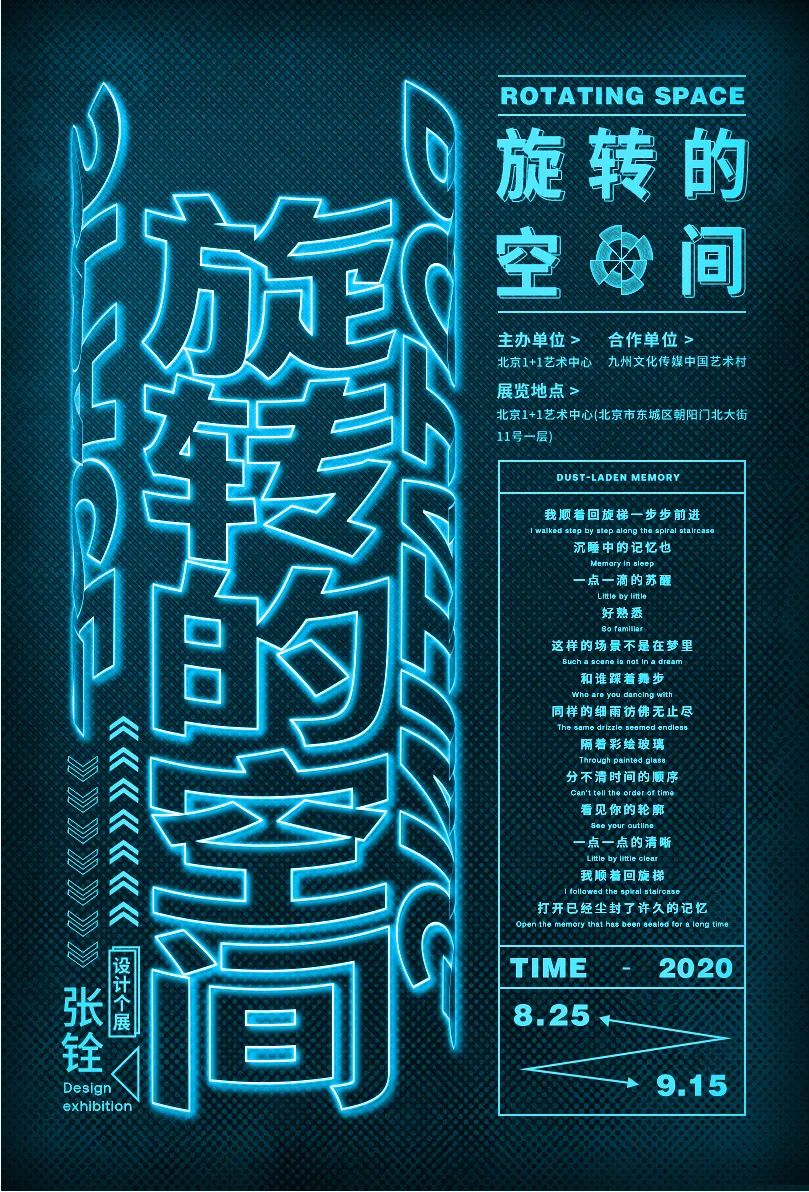 1、使用【文字工具】输入主题文字“旋转的空间”,选择“对象”-“扩展”,再把文字逆时针旋转90°;3、选择【螺旋线工具】,描边为1,颜色选择白色,填充为0,画出右图的螺旋线;4、执行“效果”-“3D凸出及斜角”,打开“预览”,参考左图数据,调整旋转角度及凸出厚度:5、继续“贴图”,选择之前新建的符号,表面选择第3个面,然后点击“缩放以适合”;2、使用【路径文字工具】选择螺旋起始位置输入文字,形成文字螺旋效果;4、选择制作好的螺旋文字,复制一个新螺旋文字,调整合适大小;6、可以复制多个螺旋文字,分别调整大小,构建出螺旋通道,最终效果:制作软件:Illustrator、Photoshop1、输入海报主题文字,按下方图示排列,并给文字加上白色描边效果;3、用【椭圆工具】绘制一个圆形,“效果”-“3D凸出及斜角”,打开预览,设置角度和突出厚度到合适数值:4、进入“贴图”,勾选“三维模型不可见”,选择之前新建的符号,表面选择第3个面,然后调整好图案大小和位置;5、点击确定返回上一菜单,不断调整角度和凸出厚度,得到想要的效果:6、接下来制作发光效果。将调整好的3D字体效果导入PS中,图层“混合模式”改为“滤色”;7、复制新的图层,给下方图层添加”图层样式”的“外发光”效果;8、复制有外发光的图层,再进行“高斯模糊”,模糊后再复制一层得到最终效果:9、最后根据版面需要,调整背景颜色,加入文字信息: