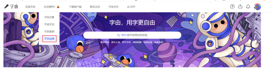 现在点击“没灵感吗”——“字体品牌”,就可以进入品牌展示区了。