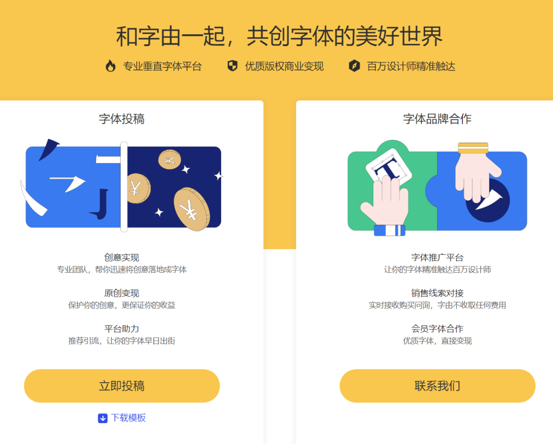 当然了,如果你也想自己的作品或品牌出现在字由,可以在字体合作页面,提交相关信息。