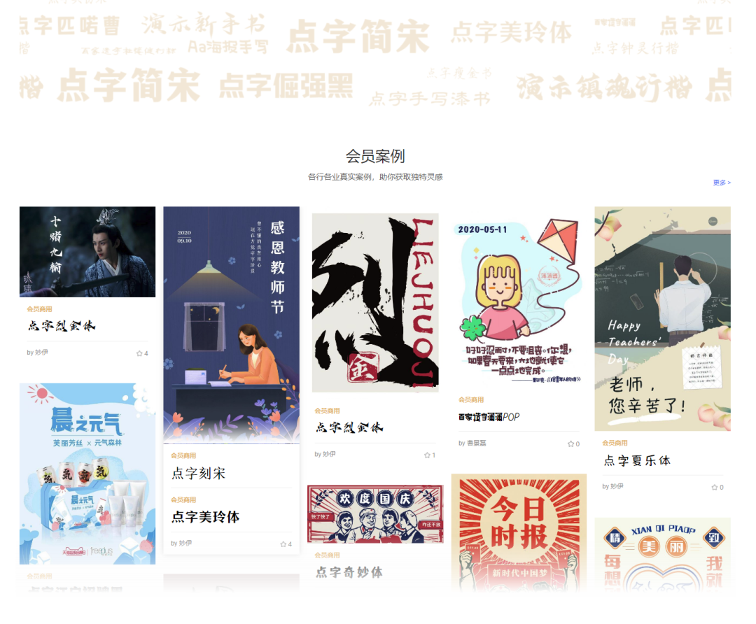 不止这样,会员页面还增加了各行各业的会员案例,拿捏不好字体气质的时候,多康康就行了。