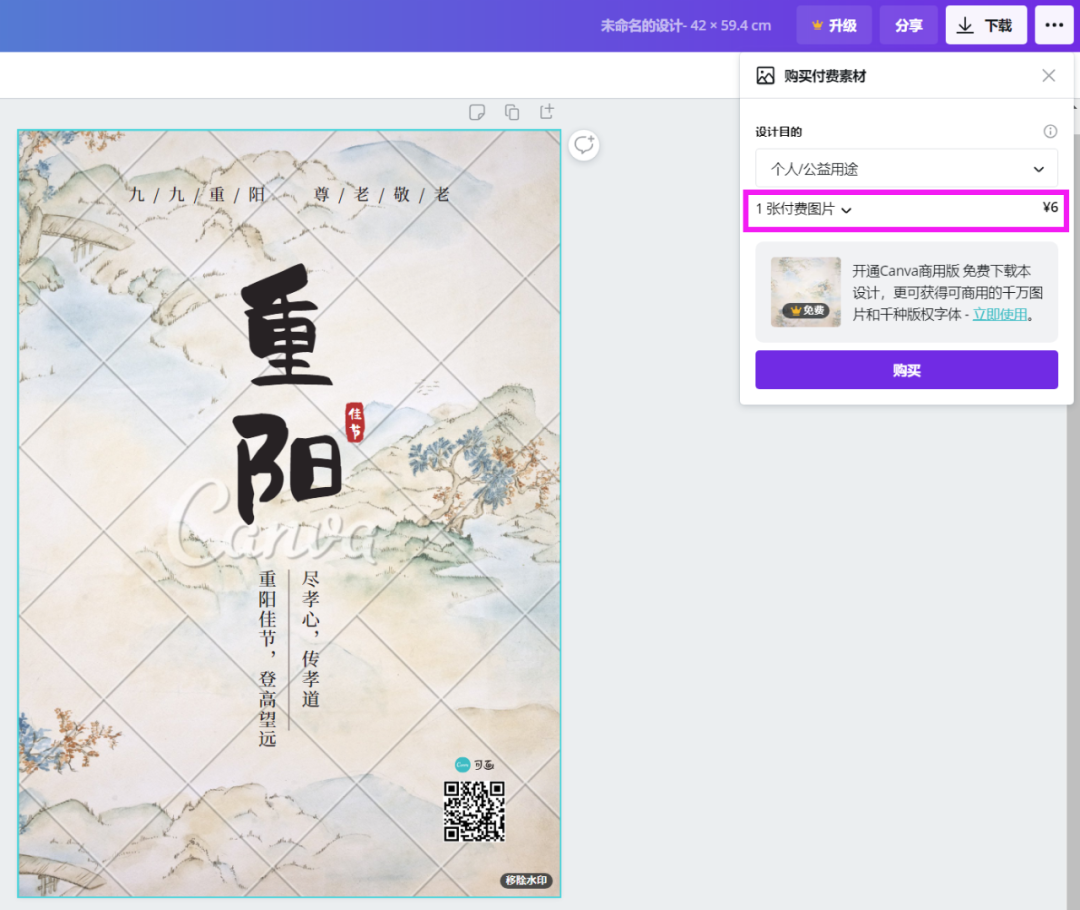 是不是还不错?不过想下载这些高清图片,需要购买一个Canva商用版。