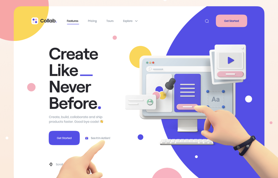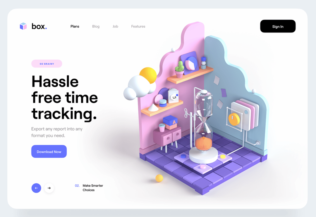 2021主要是以“3D设计”为主,在很多的设计领域,几乎都能看到它的身影。比如我们熟悉的UI设计,由以往的平面扩展到3D的形式了 。
