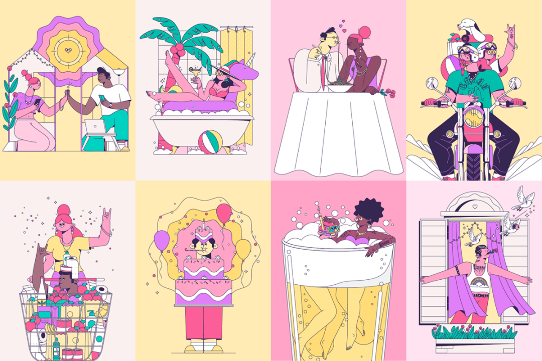 去年,这种特殊的绘画风格非常常见。通过细线条呈现的插画形式,2021年依旧会流行。