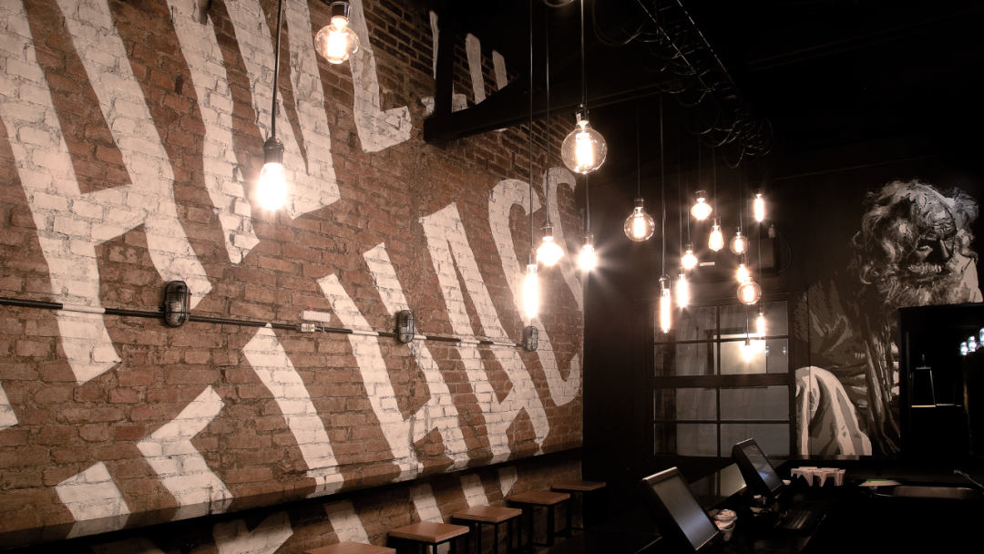 有意思的是,对于该酒吧的品牌视觉设计,他们设计了一个独特的文字LOGO。