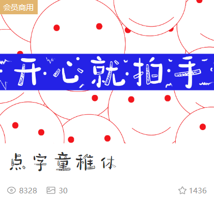 首先是我们可爱又好用的会员字体——点字墩墩体,之前在教程中也用过它,它最大的特点就是憨态可掬,很有亲和力,适用于任何场景~