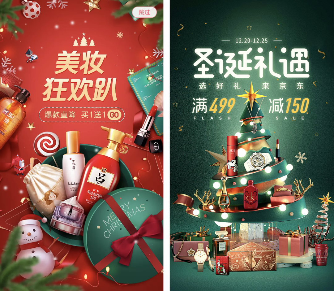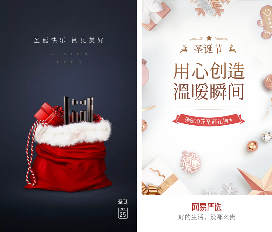 在视觉元素模块中就提到过圣诞节的视觉符号,利用好这一点,基本上就不会出错,下面一起看几个案例: