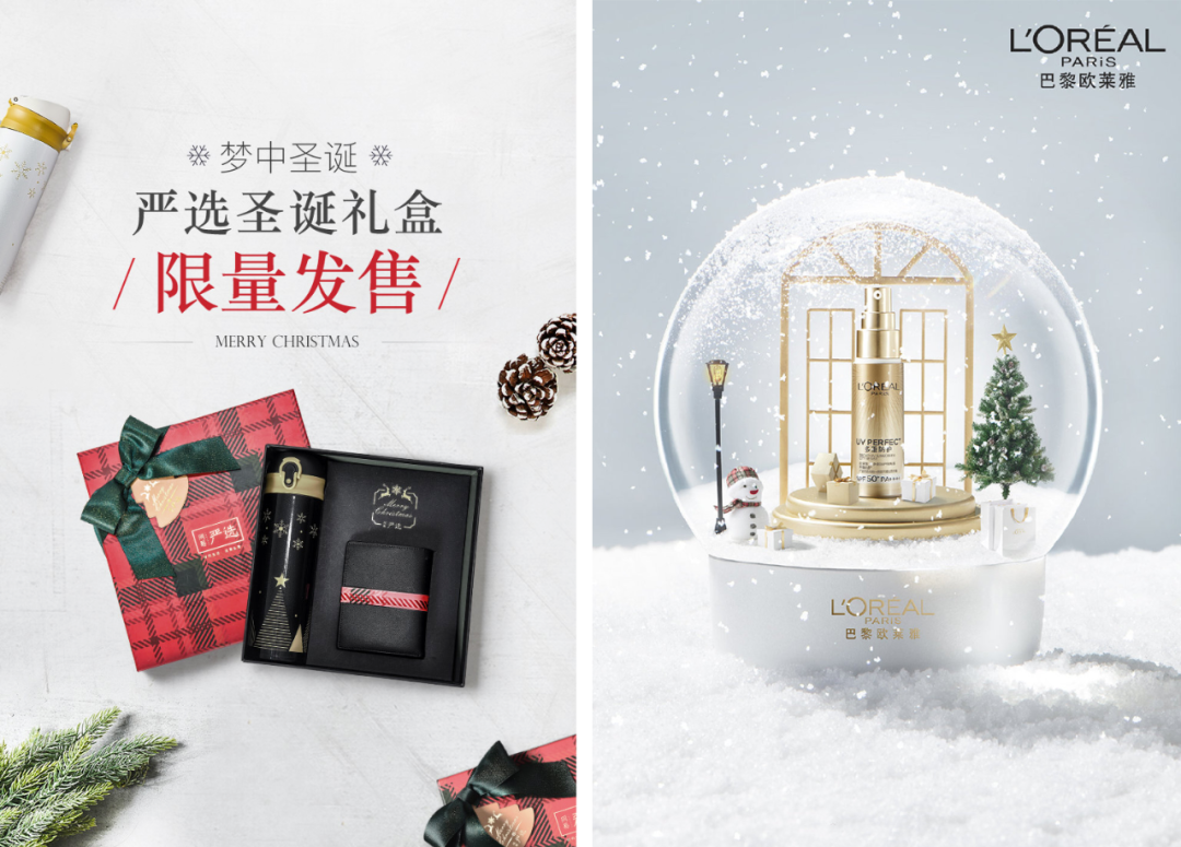 相对来说,这类风格更加安静,在保留圣诞节日气息的前提下,更能凸显品牌调性。