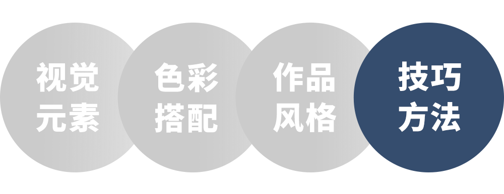 视觉元素、色彩搭配和作品风格了解清楚之后,下面我们就需要利用一些设计中的技巧方法实现作品输出。