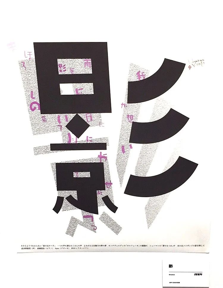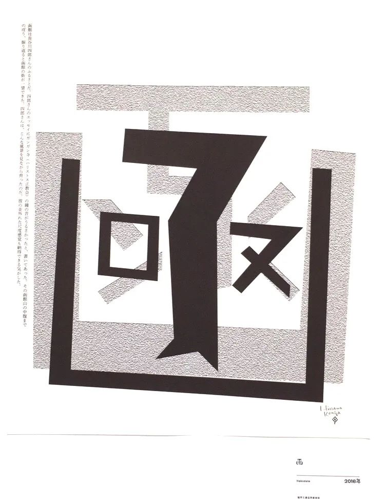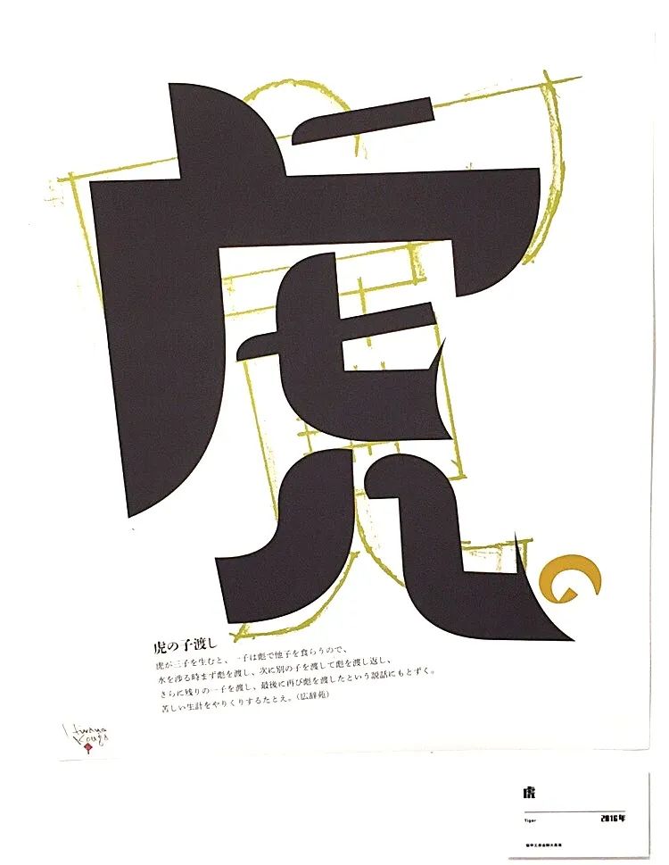 以独特的线条呈现朴素与趣味兼具的手绘文字,从60年代至今仍不断在书的世界中漫舞,以文学大师大江健三郎的小说《先跳再看》设计海报,获得当时非常重要的「日本美术宣传协会」展览特选奖。