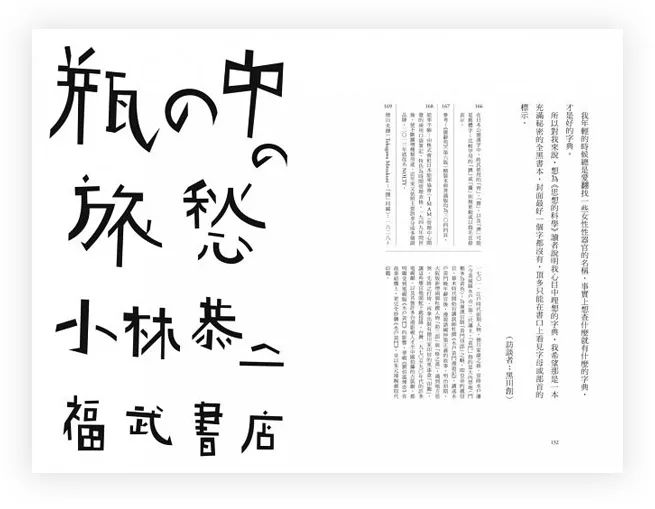 使用不适合的字体会引起类似花粉症的不适感,会让人打喷嚏。文字和书本间存在着一种气氛,有些字不能那么用,逐渐就体会到设计的微妙尺度。