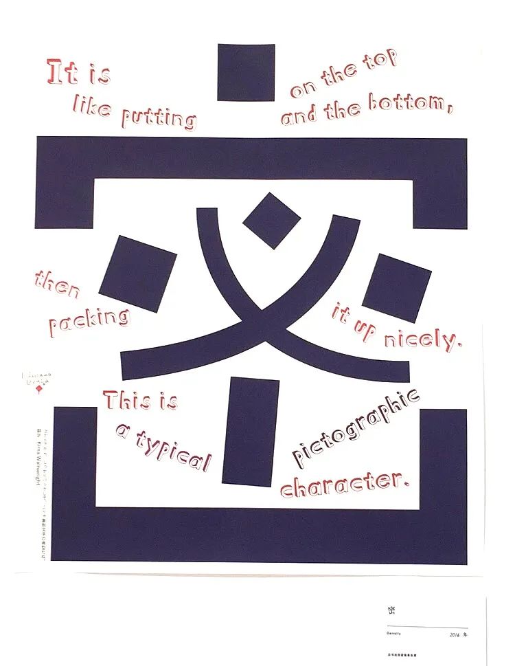 至于怎麽写出来的文字才叫文字,虽然我常常把文字写得快要脱离原本的形状,但我为了得到合乎自我审查的文字,不仅顺著文字本来的力量书写,也将那些使我存在的经验全部拿出来再利用,才能写出有力量的文字。这都是由我的意识让这些文字得以依照合适的型态诞生出来,而这也就是设计者工作的意义。