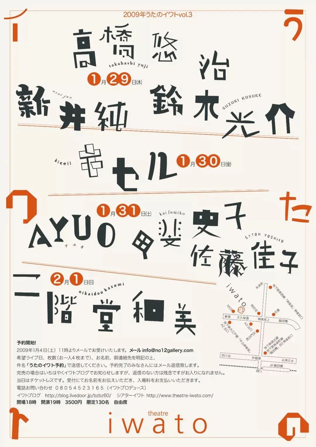 无人出其右,植草甚一、椎名诚、小野二郎、今江祥智、中平卓马、恩田陆等等名家的作品都由他操刀。同时也与「黑帐篷剧团」、「水牛乐团」交流匪浅,经手无数平面文宣、海报与剧场设计。二○○五年于东京神乐坂「theater iwato」小剧场担任艺术总监。