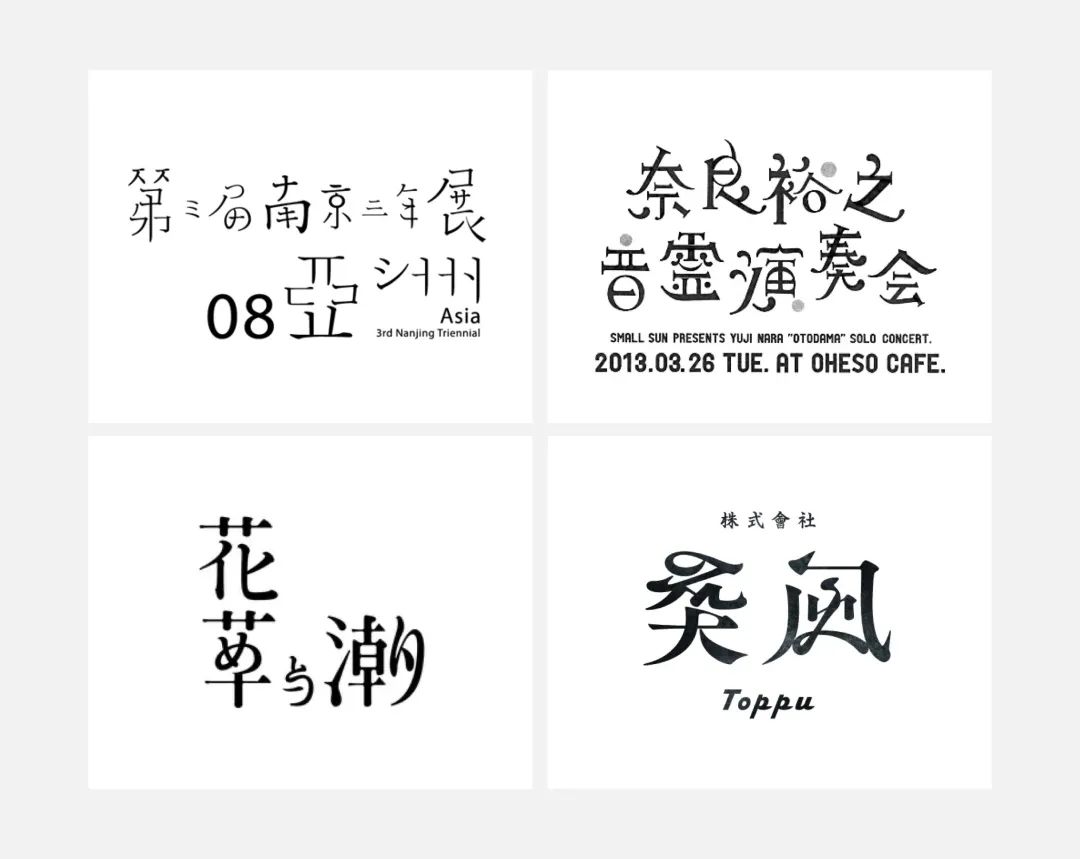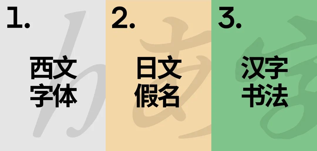 今天,主要给大家介绍的笔画置换思路分为三种,分别是借用西文字体、日文假名以及汉字书法来进行置换。当然,从本质上来说,它们都是在进行不同字体的拼接。下面,我们先来讲用西文字体替换的部分。