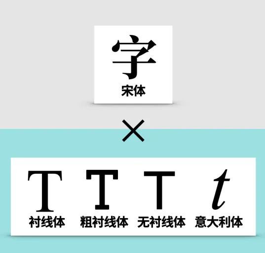 所以从最简单和容易出效果的角度出发,我们更推荐大家这四种搭配方式,分别是宋体与衬线体,宋体与意大利体,黑体与粗衬线体,以及黑体与无衬线体。