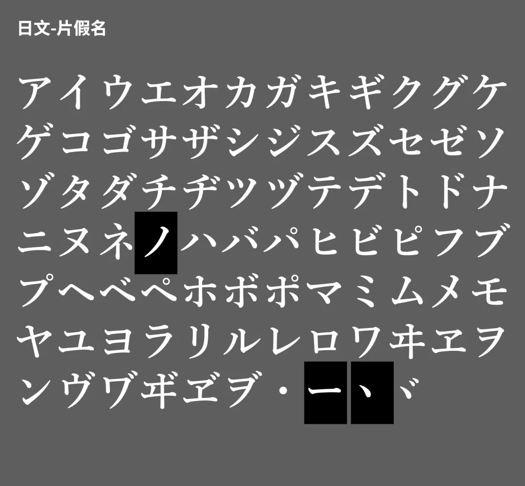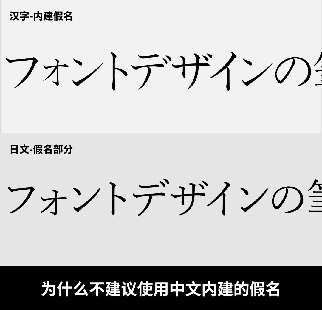 在选择日文假名的时候,我们会遇到一个小问题,其实很多中文字库是内建有假名的。那么有些同学可能会觉得,使用同一字库中的字符,统一性该是最好的才对吧?