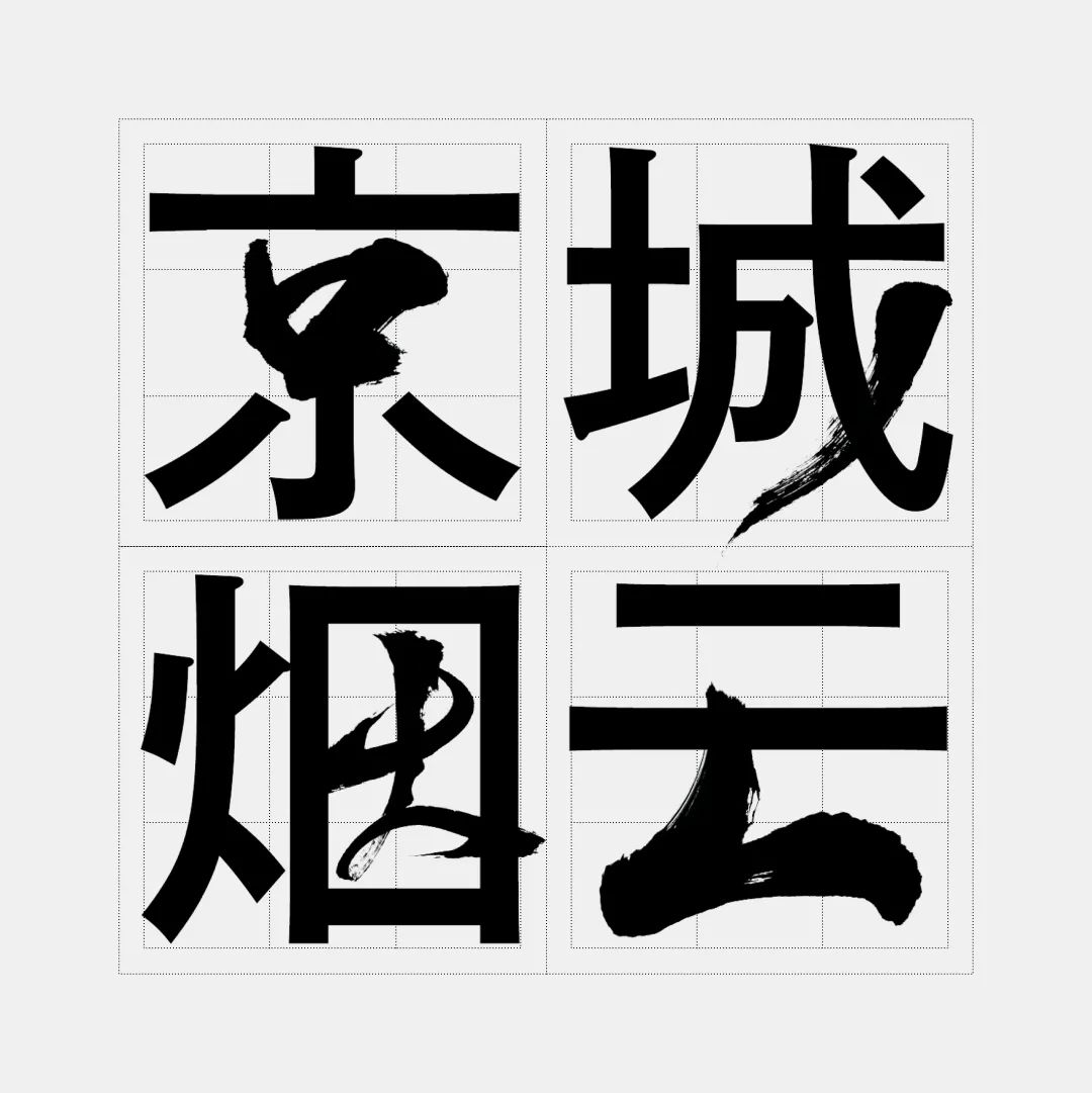 除了黑体搭配书法笔画,我们也可以用宋体搭配书法笔画,同样我们可以参考书法字中的结构趋势去微调。
