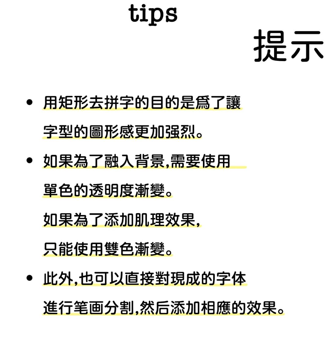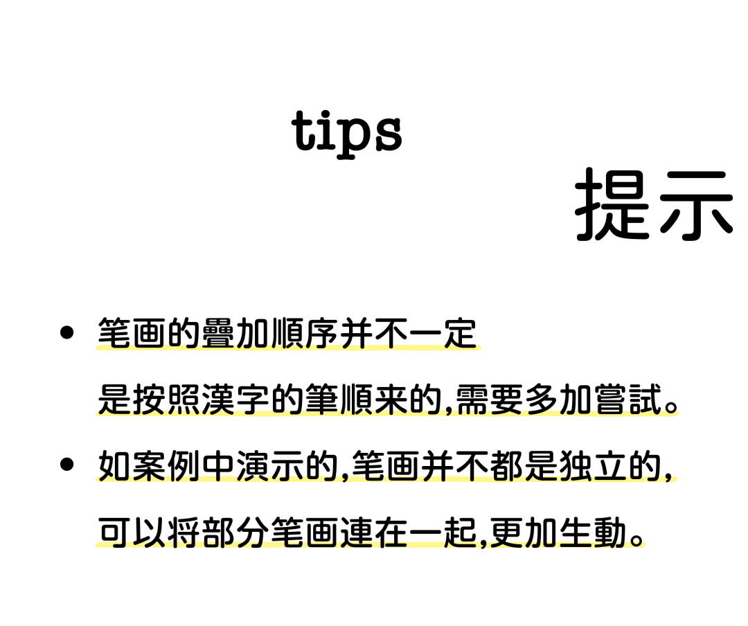 以上就是今天从修改笔画外观出发的,超简单字体设计方法的全部内容了。相信大家也都能感觉到,只要合理利用设计素材和软件功能,往往就能达到事半功倍的效果。大家也可以自行多做试验,没准能发现属于自己的独家设计套路。好了,我们下次再见,拜拜:-)