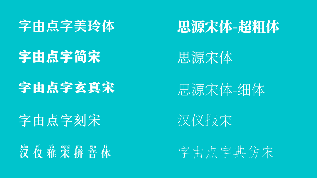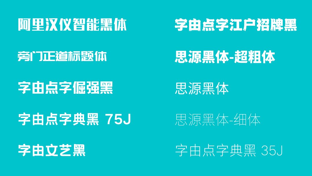 细黑体简洁工整,可读性高,适用于较为正式或现代感强的设计中,如科技、互联网行业。