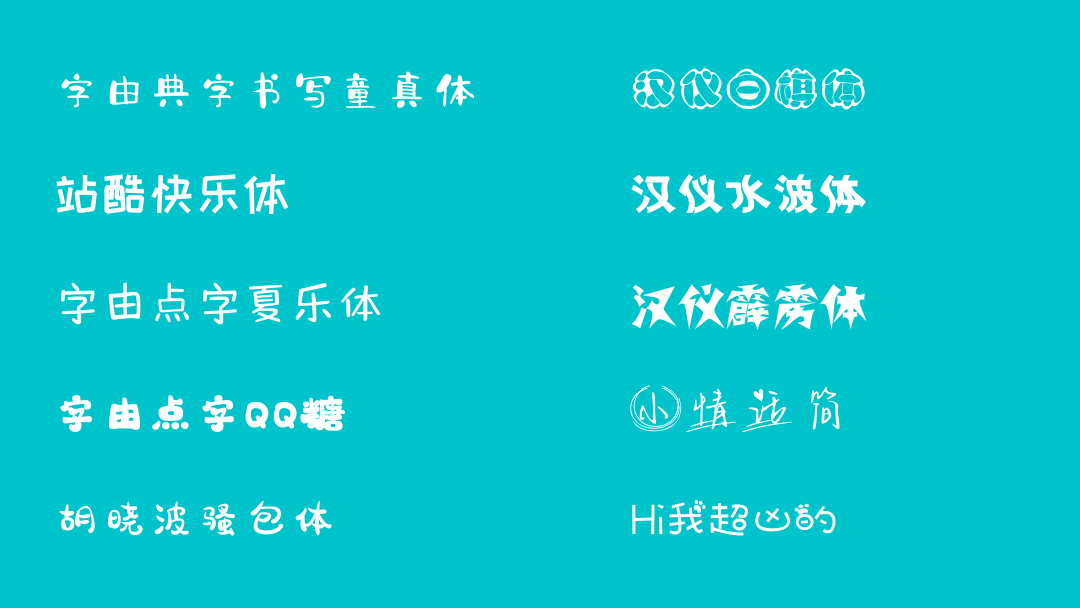 手写体与艺术体主要用于标题。圆体卡通体等手写体可以用于儿童、少女、甜品等温馨活泼的品类。一些艺术字体也可以作为强烈的设计装饰元素,或表达态度。