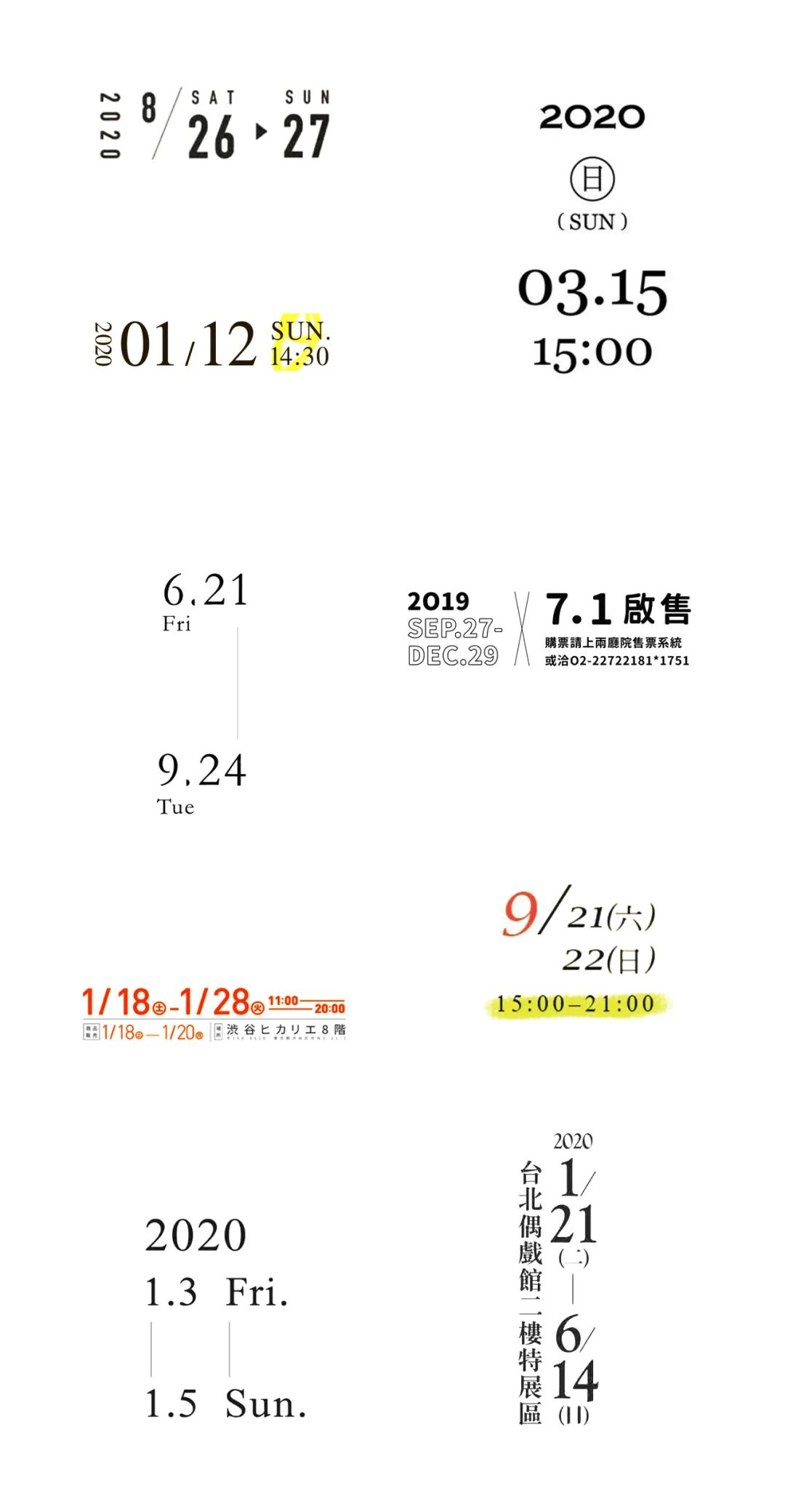 有不少设计师觉得标题设计和日期编排很难,特别对于刚入门的设计师,不知如何下手。在进行文字编排之前,我们首先要理解文字的内容。我见过很多设计师只注重版式美观而不关注文字内容,把文字一拿到手就开始编排,从不考虑文字在说什么。他们认为文字一定要服从于自己的感觉,反而这是不正确的设计方法。对于一篇文案稿,如果我们不去理解它表述的内容,就很容易本末倒置。这次我整理了常见的标题设计和日期编排的参考,应该能给你带来不少的灵感。你会发现重组之后的标题和日期,层次感也会丰富起来。
