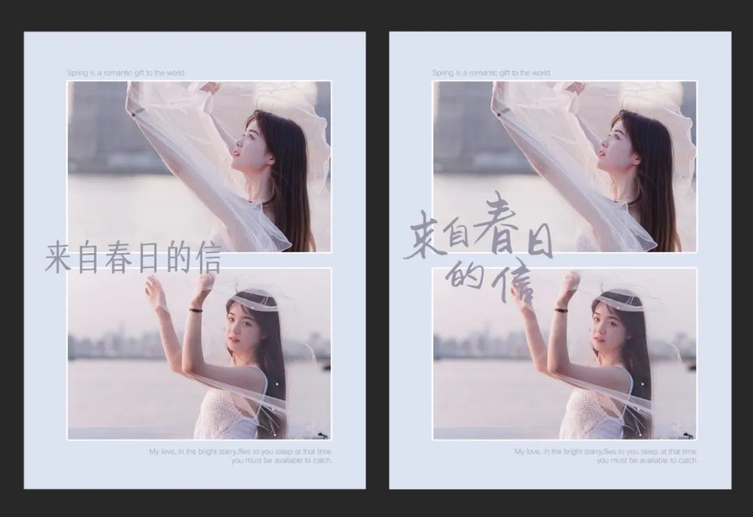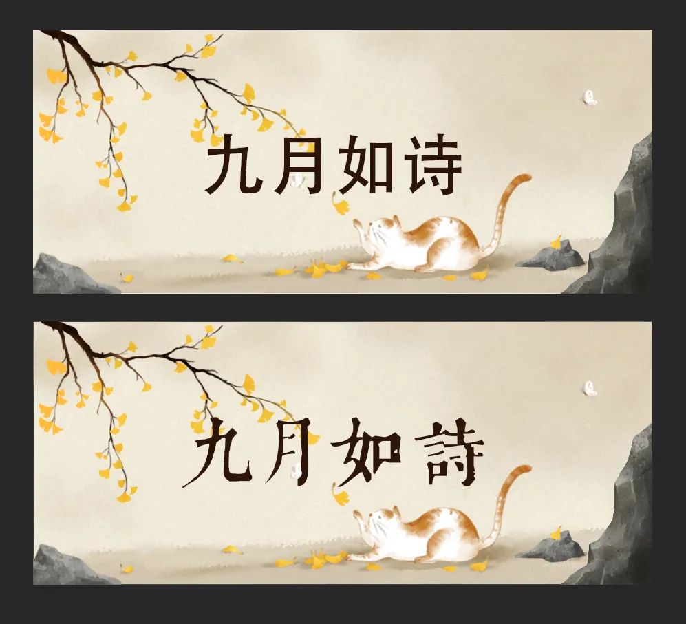 为了避免小可爱们在以后的设计中踩雷,柚子准备了一组画面和字体搭配的案例~通过对比的方式,更清晰地看出不同的字体对画面的影响力差异😊