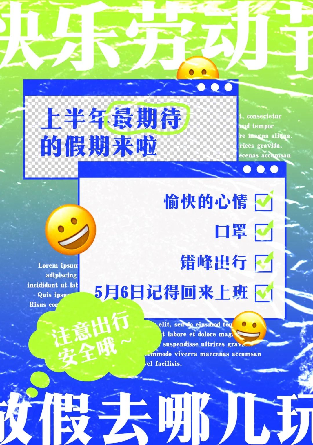 当然,设计师会用更专业的软件,为此柚子贴心准备了干劲满满的五一字体!海报早做完早放假!😊