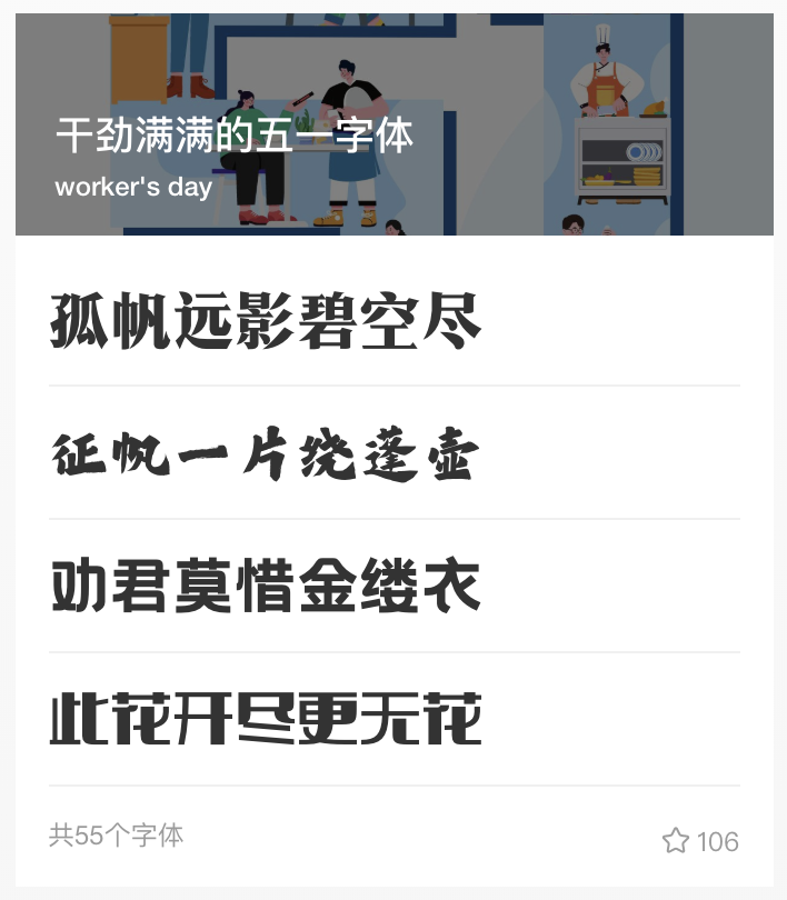 劳动节大都想犒劳自己一下,买买买不停。这时电商就要抓住机会搞促销,免费可商用的字由文艺黑绝不能错过。同样大火的免费可商用字体优设字由棒棒体当然也要出来亮个相~老板给我放假,我给老板省钱✌️像柚子这么为公司着想的设计师,也该被老板表彰一下了(疯狂暗示)当然也有自律性超强的小伙伴在好不容易得来的五一假期里选择提升自己,好好学习!你们就是最强的!提升自己的同时也不要忘了陪陪家人~劳动节过后紧接着就是母亲节,全家踏青安排上。不管去哪儿玩,带上愉快心情的同时,也不要忘记戴上口罩哦😳如果这些字体还不够你发挥,没关系,把“干劲满满的五一字体”合集加入收藏,一定有你爱的那一款~