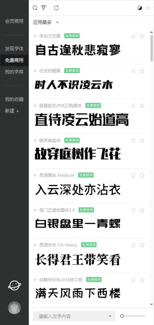 首先是不花钱的白嫖字体,你只需下一个字由客户端,不用注册,就可以商用这些字体,超爽的~