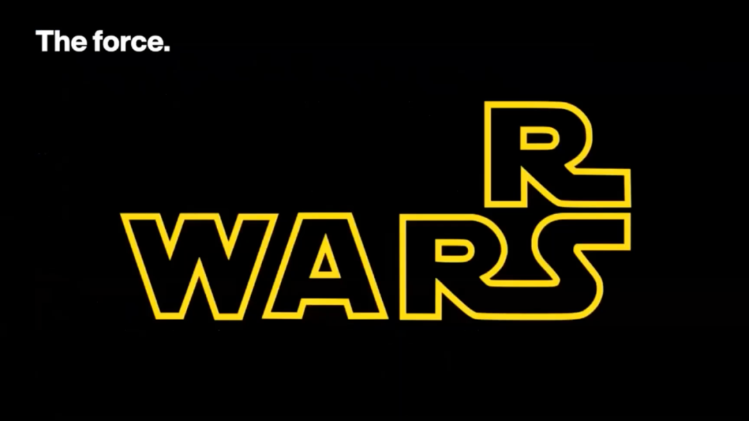 《星球大战》的字标诞生于近半个世纪前,其中 R 的末笔不合常规但深入人心。在最近的平面设计中,这样造型的 R 也多有出现,通过这一个字母就获得了品牌的表达。