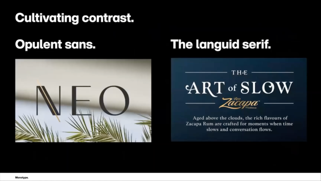 从传统中移开:将字母造型的经典粗细对比对调,获得极度反传统的设计。这是一种源自 19 世纪的复古潮流,在今天的数字时代产生了更多丰富多彩的实验性设计,为品牌表达赋予不同的声音。