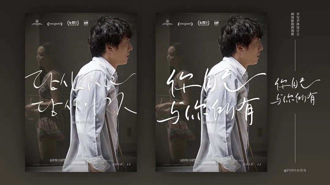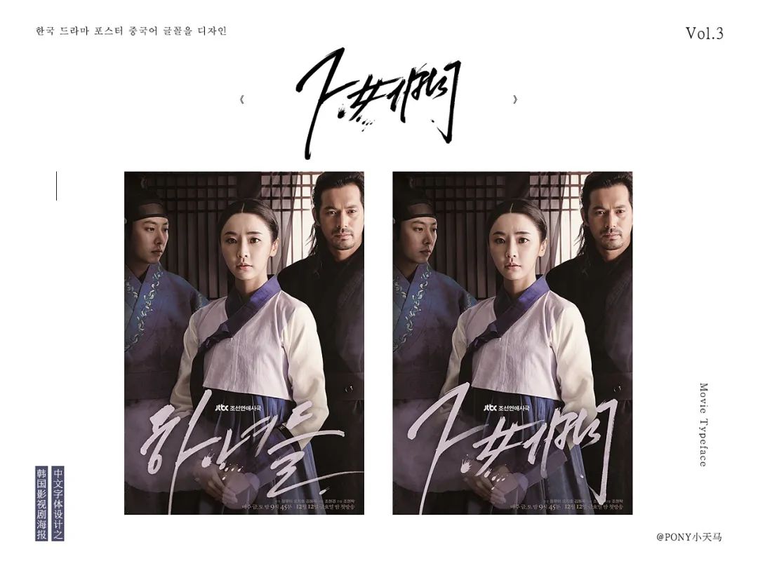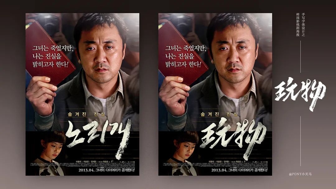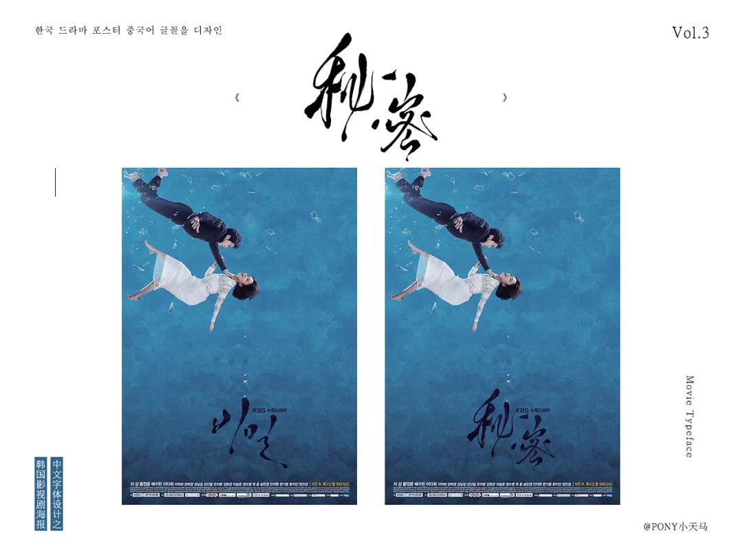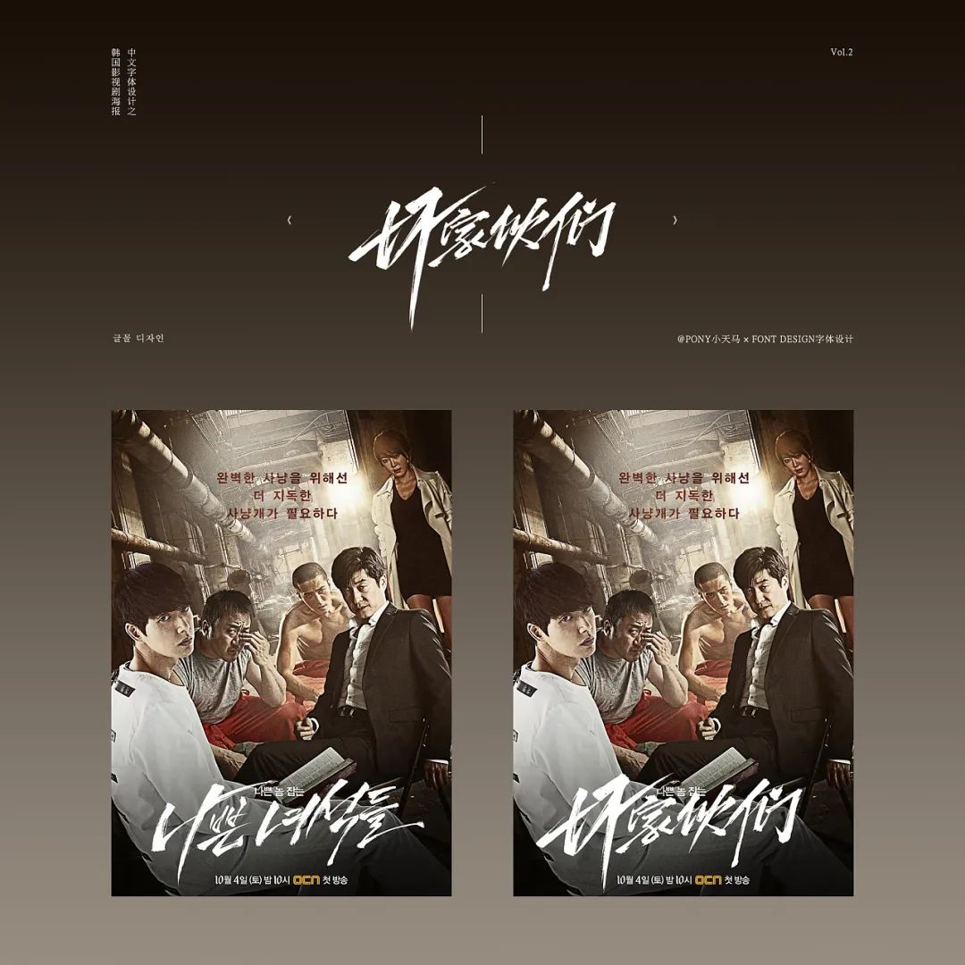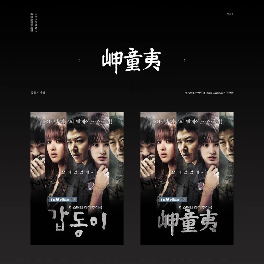 emmm,不能说一模一样,只能说毫无关系,韩文表达的那种邪恶、尖锐,到了中文,完全被磨平了棱角。其它韩剧也是一样,打上中文字体只是为了识别,至于气质配不配,完全不在考虑范围内,毕竟只要不侵权就行(大部分用免费字体),呃,好好一韩剧,就这么被“改装”成了低成本网剧的既视感😭不过最近柚子刷站酷,发现了一枚宝藏字体设计师PONY小天马😎经过他手的字体设计,完全保留了原版海报的味道,看了以后毫无违和感,简直想要疯狂打call!比起韩剧,韩国电影的海报更有意境,字体就是表达情绪的最好窗口。还有更多作品,你可以直接去站酷看PONY小天马哦🌈