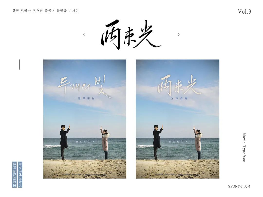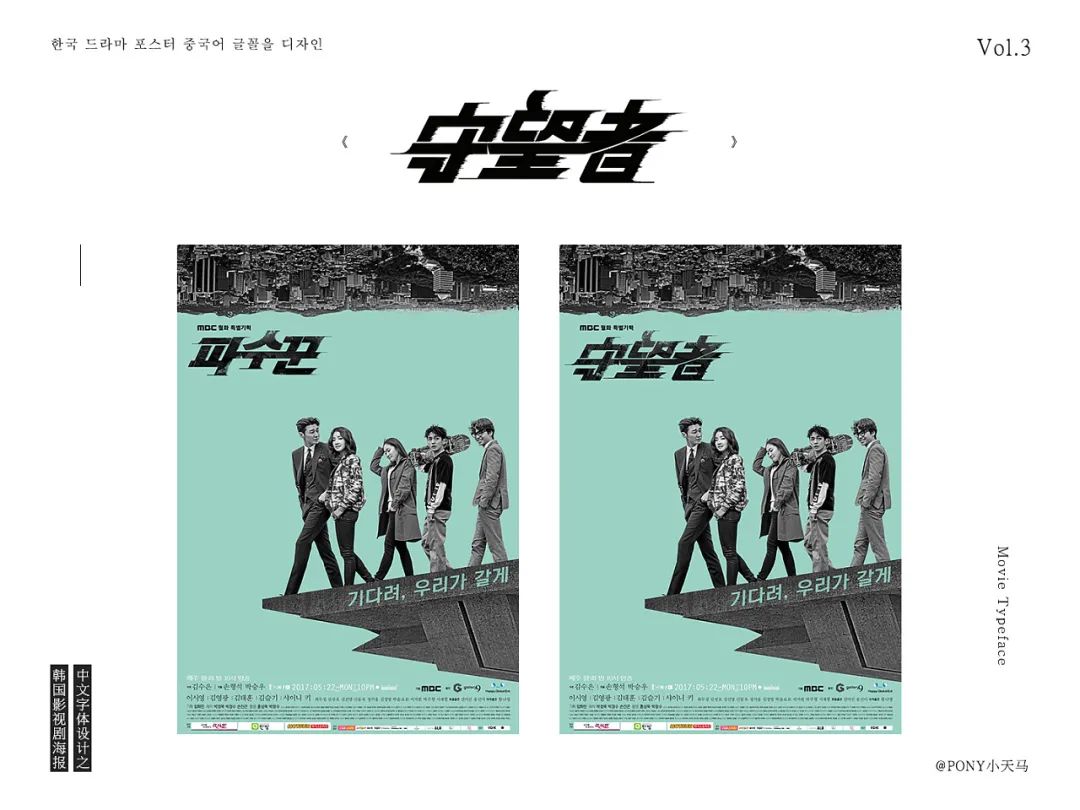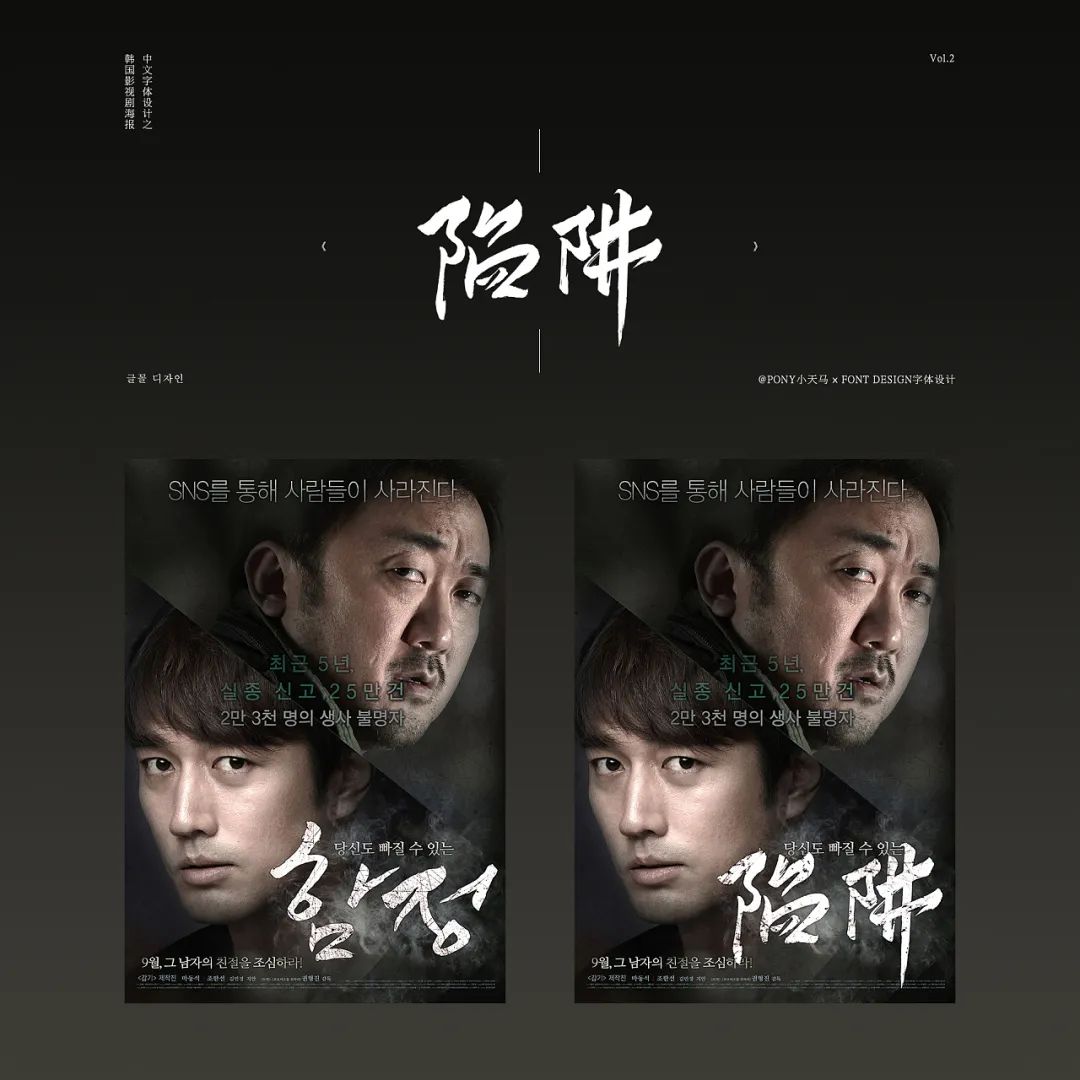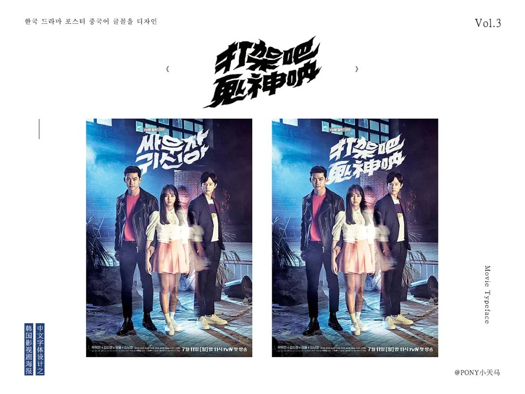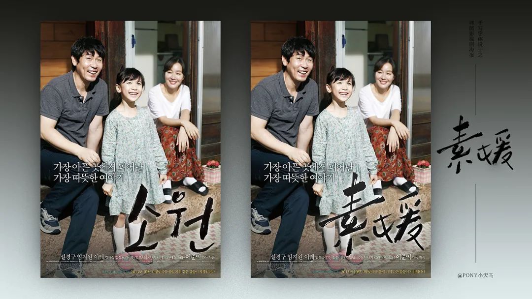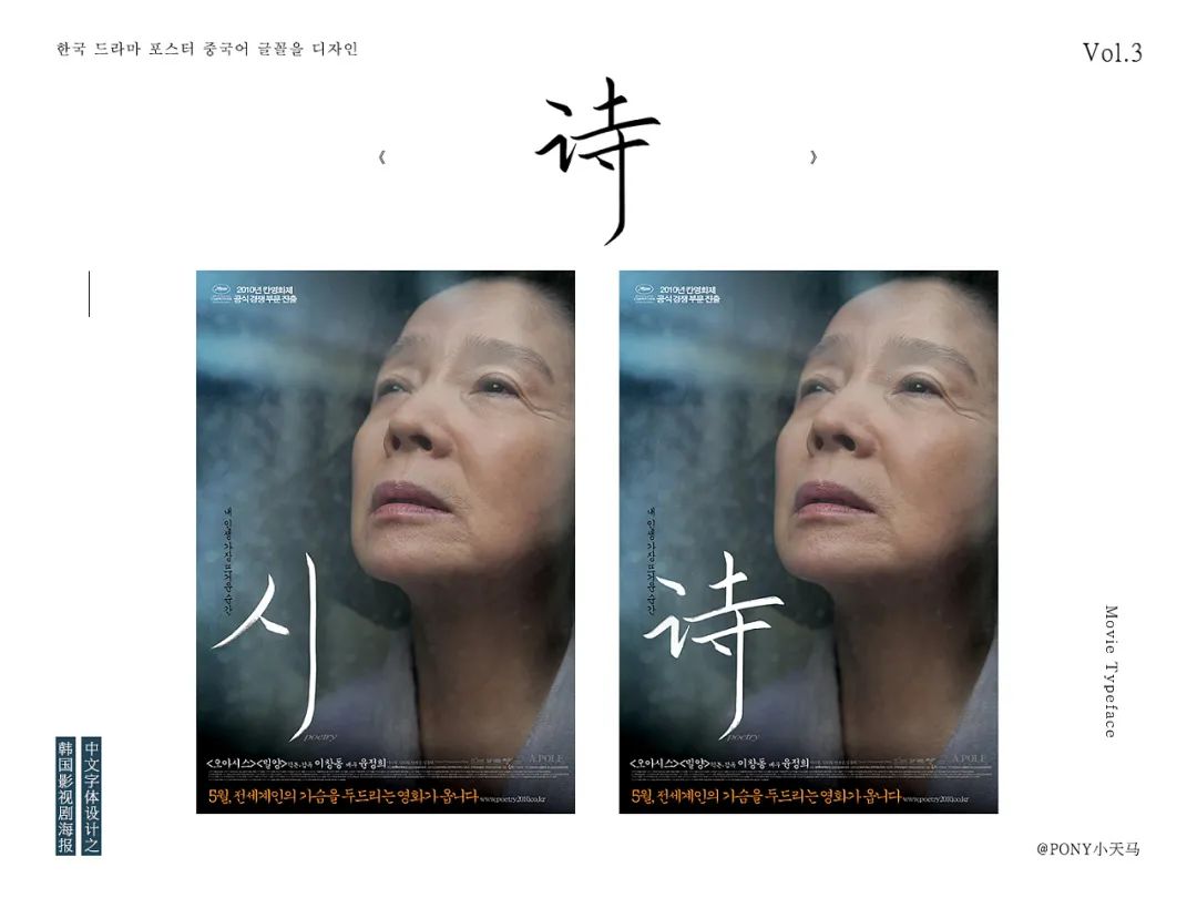 emmm,不能说一模一样,只能说毫无关系,韩文表达的那种邪恶、尖锐,到了中文,完全被磨平了棱角。其它韩剧也是一样,打上中文字体只是为了识别,至于气质配不配,完全不在考虑范围内,毕竟只要不侵权就行(大部分用免费字体),呃,好好一韩剧,就这么被“改装”成了低成本网剧的既视感😭不过最近柚子刷站酷,发现了一枚宝藏字体设计师PONY小天马😎经过他手的字体设计,完全保留了原版海报的味道,看了以后毫无违和感,简直想要疯狂打call!比起韩剧,韩国电影的海报更有意境,字体就是表达情绪的最好窗口。还有更多作品,你可以直接去站酷看PONY小天马哦🌈