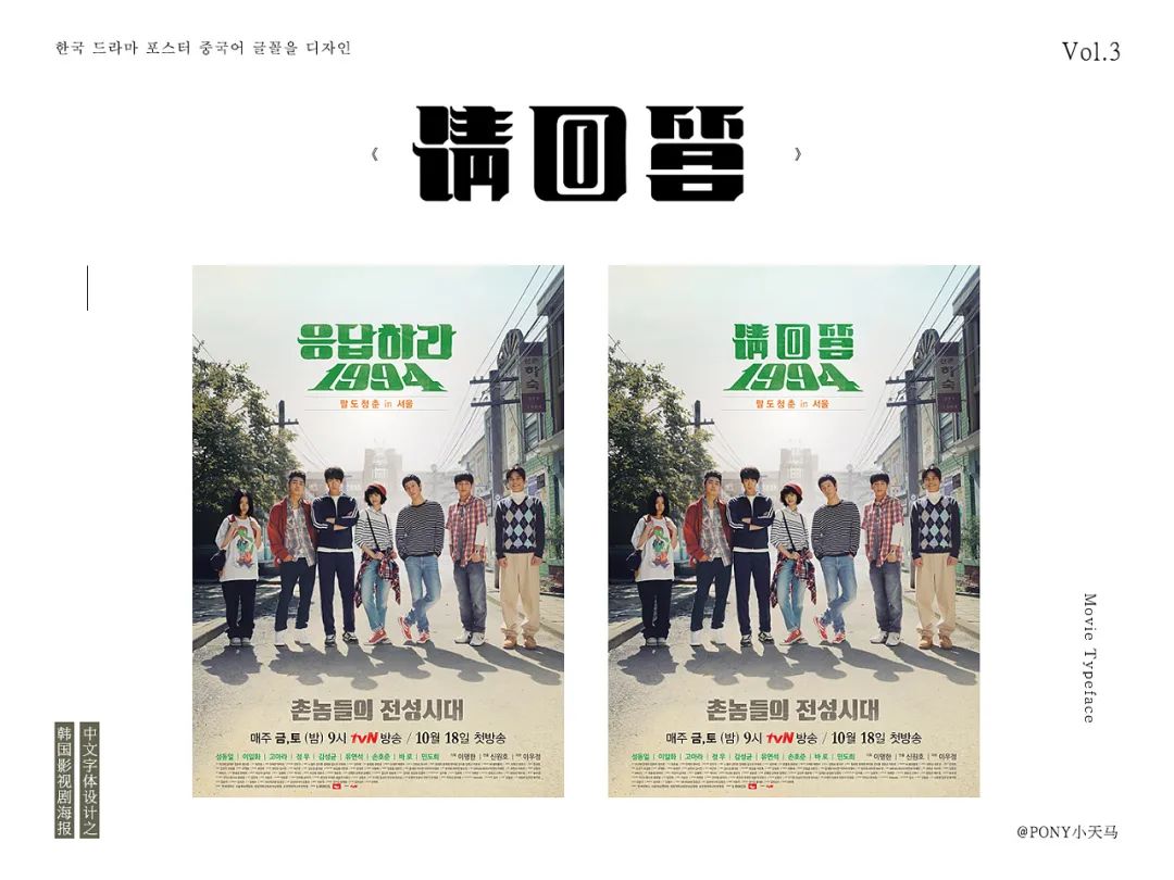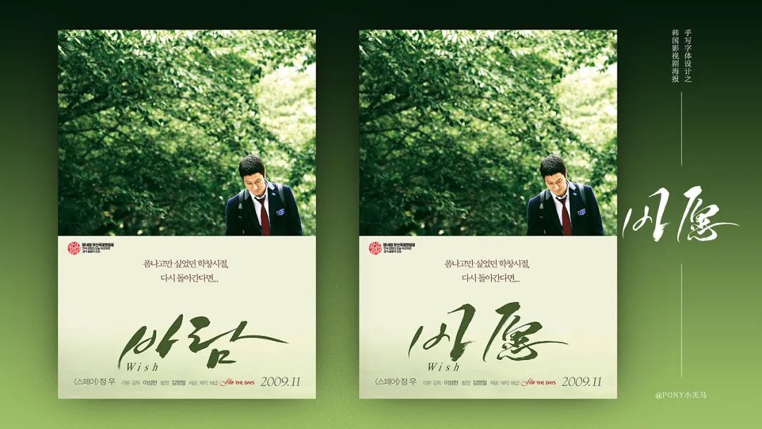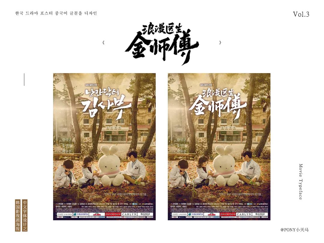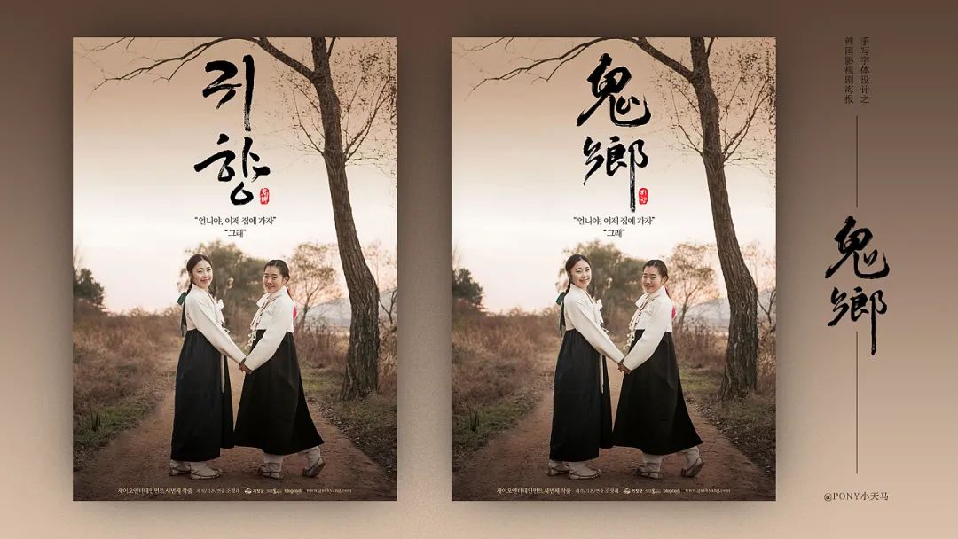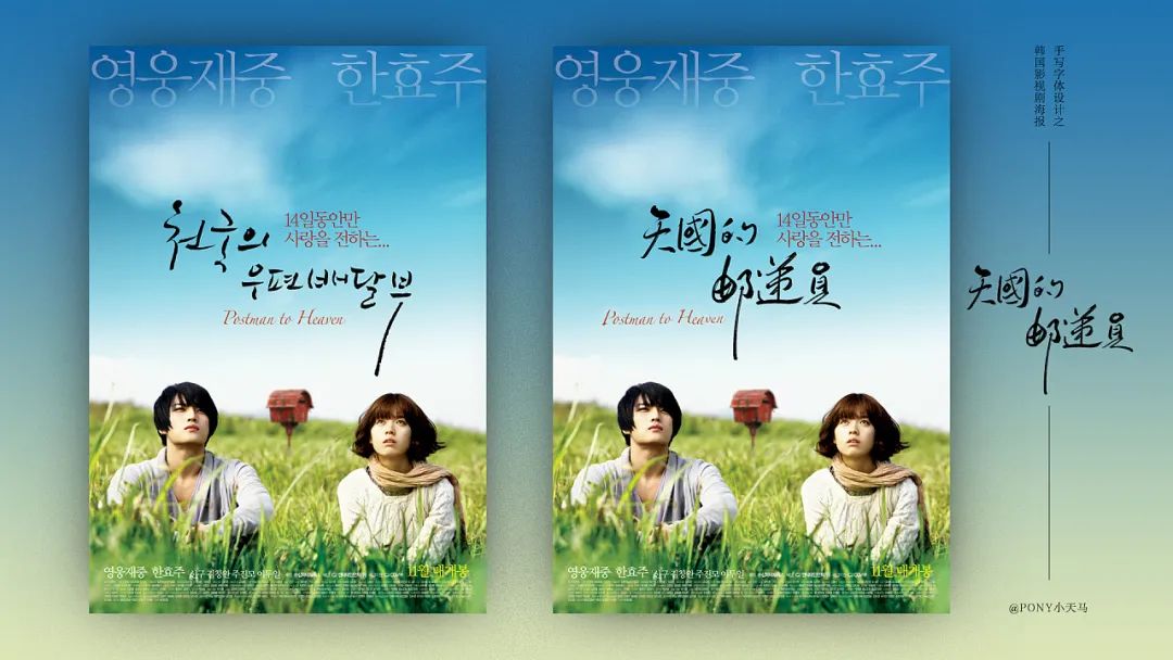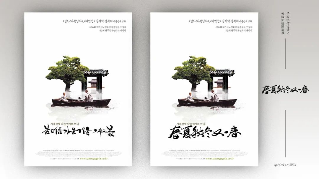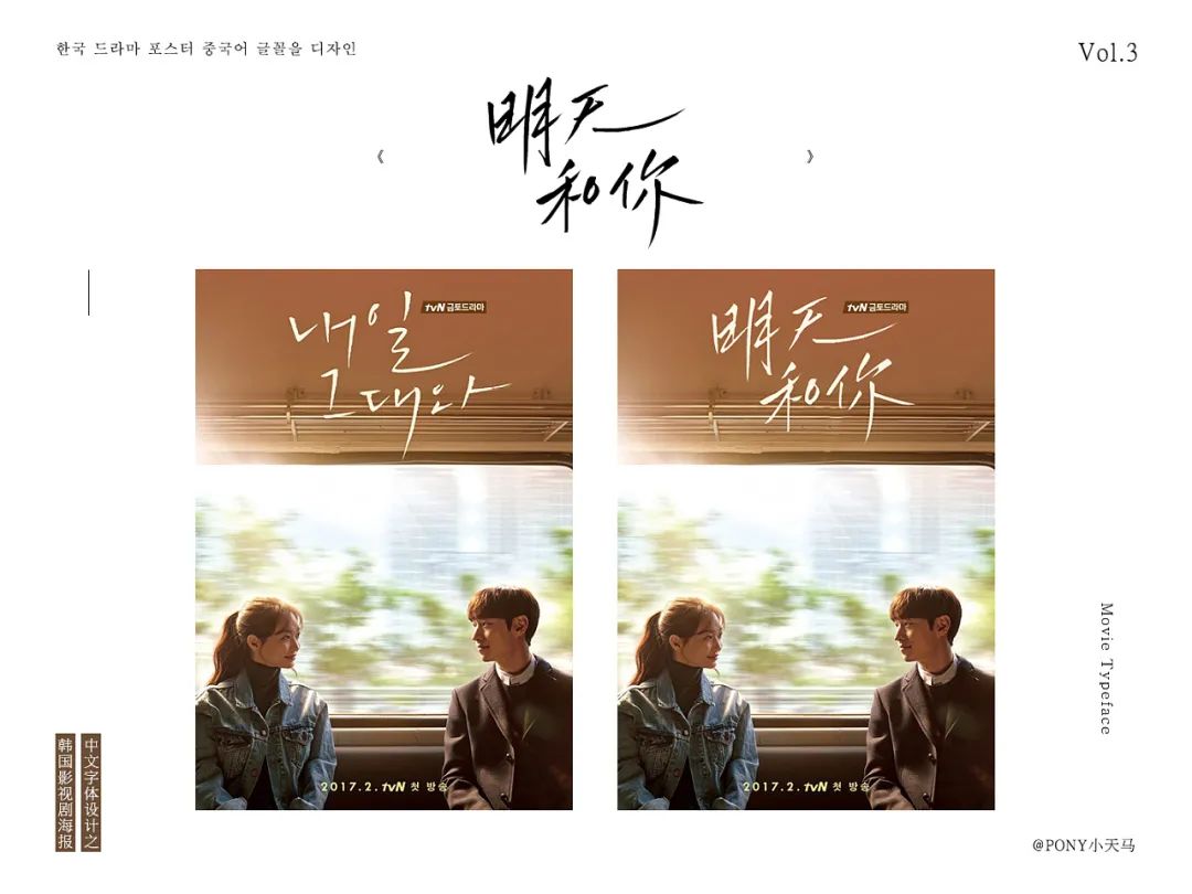 emmm,不能说一模一样,只能说毫无关系,韩文表达的那种邪恶、尖锐,到了中文,完全被磨平了棱角。其它韩剧也是一样,打上中文字体只是为了识别,至于气质配不配,完全不在考虑范围内,毕竟只要不侵权就行(大部分用免费字体),呃,好好一韩剧,就这么被“改装”成了低成本网剧的既视感😭不过最近柚子刷站酷,发现了一枚宝藏字体设计师PONY小天马😎经过他手的字体设计,完全保留了原版海报的味道,看了以后毫无违和感,简直想要疯狂打call!比起韩剧,韩国电影的海报更有意境,字体就是表达情绪的最好窗口。还有更多作品,你可以直接去站酷看PONY小天马哦🌈