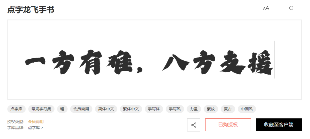 然后是几款新上的会员商用,比如点字敦肃体、点字龙飞手书(点字龙飞正楷的好兄弟)、点字飒爽手写体。