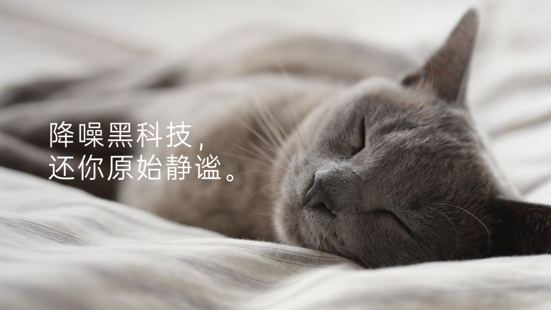 “降噪黑科技,还你原始静谧”这句话主要是想突出安静的气息,所以我没用字形复杂的字体,而是用了笔画纤细、字形规正的普通黑体: