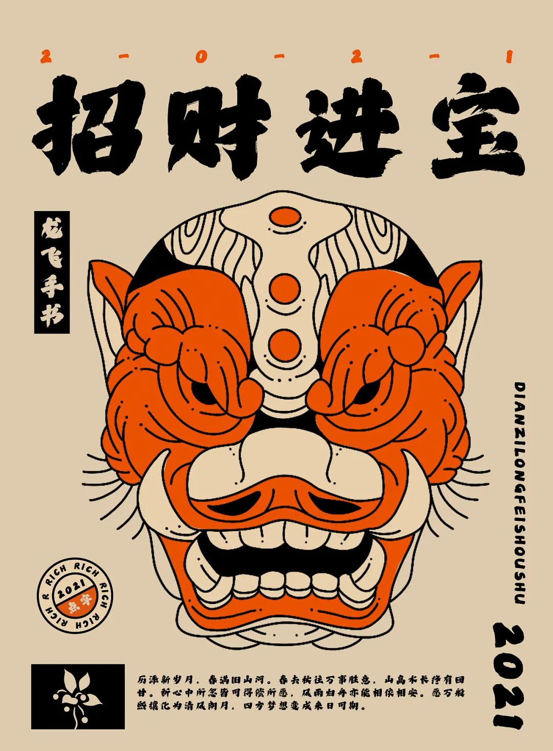 跟大哥的正统范不一样,点字龙飞手书看起来更开朗豁达,灵感来源于唐朝楷书作品,放大其丰腴敦厚的造型,辅以灵动巧妙的笔触,飞白自然,独具一格。
