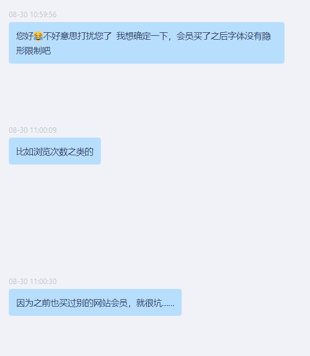 很多人买字体喜欢看价格,认为越便宜的就是越好的,其实不然,毕竟字库跟实物商品还不太一样,无法一眼判断出性价比,而是在使用过程中逐渐感知,包括字体的好用度,字体的商用范围等。最简单的例子就是,有人买了所谓的终身会员后,才发现只是个人授权,甲方还得二次购买,不然就是侵权(说多了都是泪)。