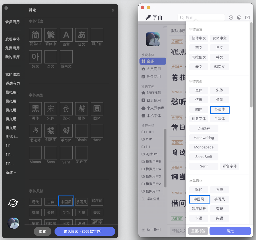 筛选也从之前的单一选项变成了多选(成年人做什么选择,我都要),面板更清晰易懂,找字更精准。