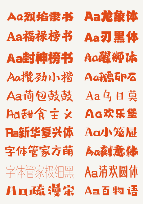 简单来说就是,Aa字库专门拿出了20款单独授权的字体,给餐饮企业商用(这些字体字由都有)。