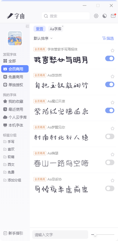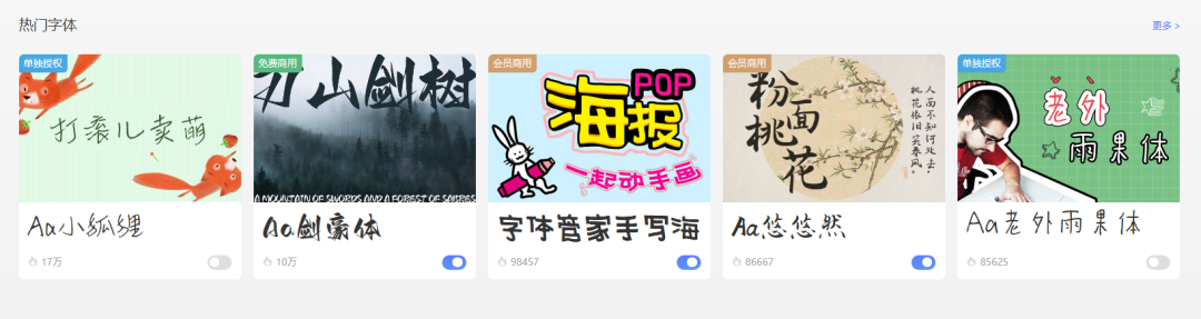 其中爆款的Aa手写海报还是会员商用(真香),另外还有五款字体,都是买字由会员,就可以解决商用授权问题。