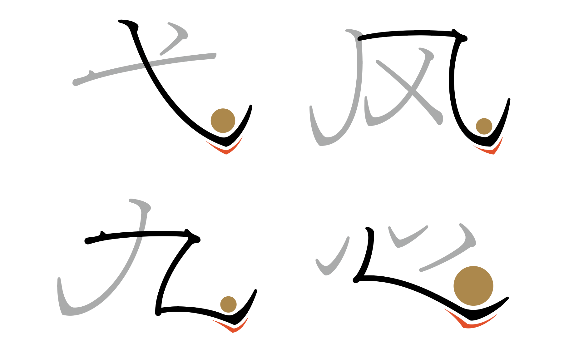 直竖起笔蓄力,收笔发力内敛,借鉴了瘦金书的提按和顿笔。撇竖的起收笔都较为内敛,具有撇的特征和竖的作用。