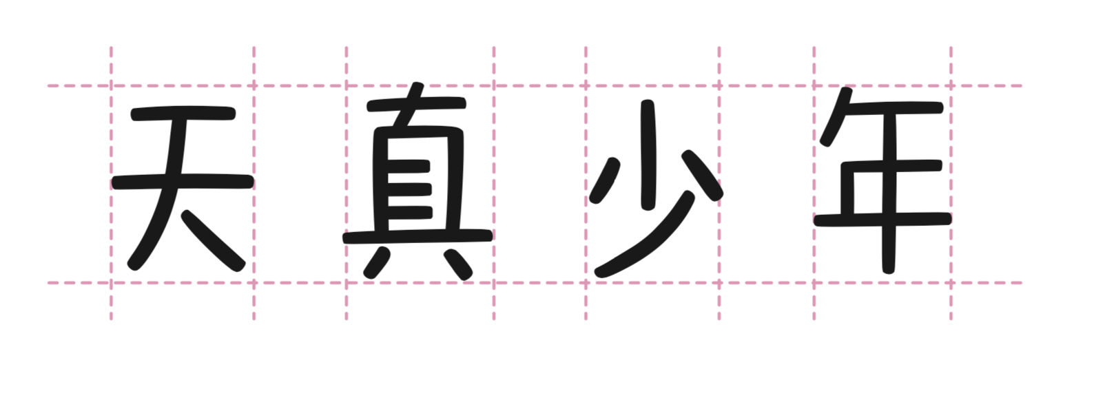 汉仪天真体通过将重心向下调的方式,用字体的语言表达了少年时童言无忌的稚气。