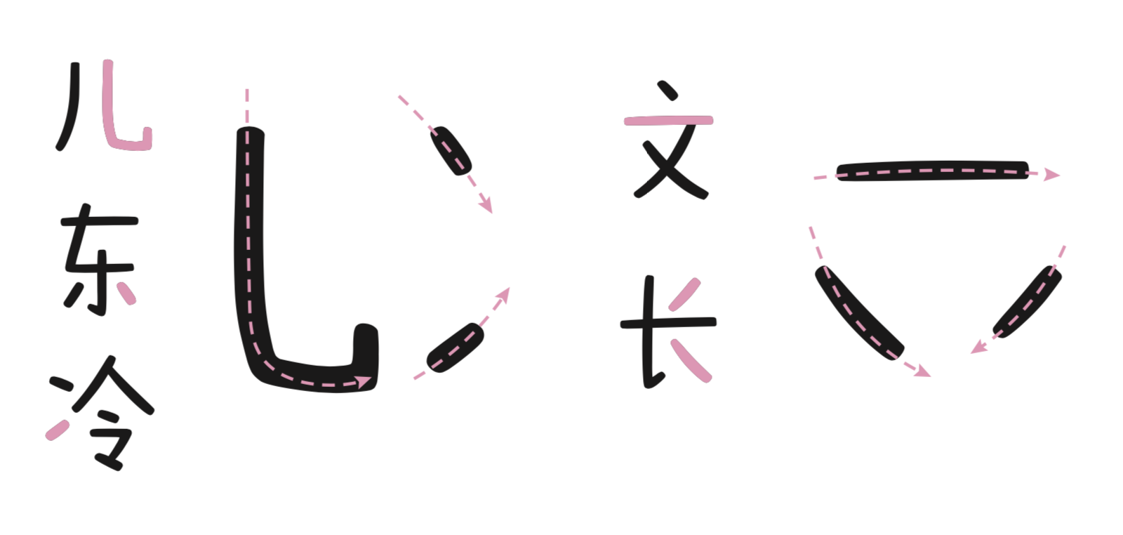 汉仪天真体将字体内部结构向下移,形成了上方空间宽松,下方空间紧凑的童趣画面,恰到好处的还原了幼年时我们歪歪扭扭,自成一派的风格字体。