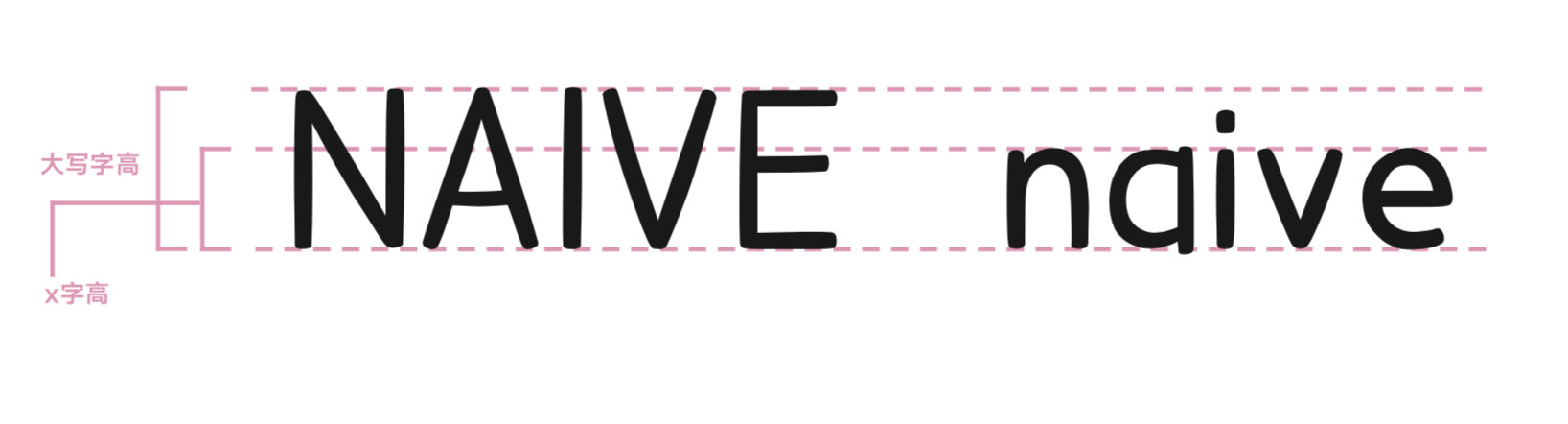 相比中文而言,汉仪天真体的西文字母更加规整,x字高较高。西文字母 的笔画粗细同样均匀。